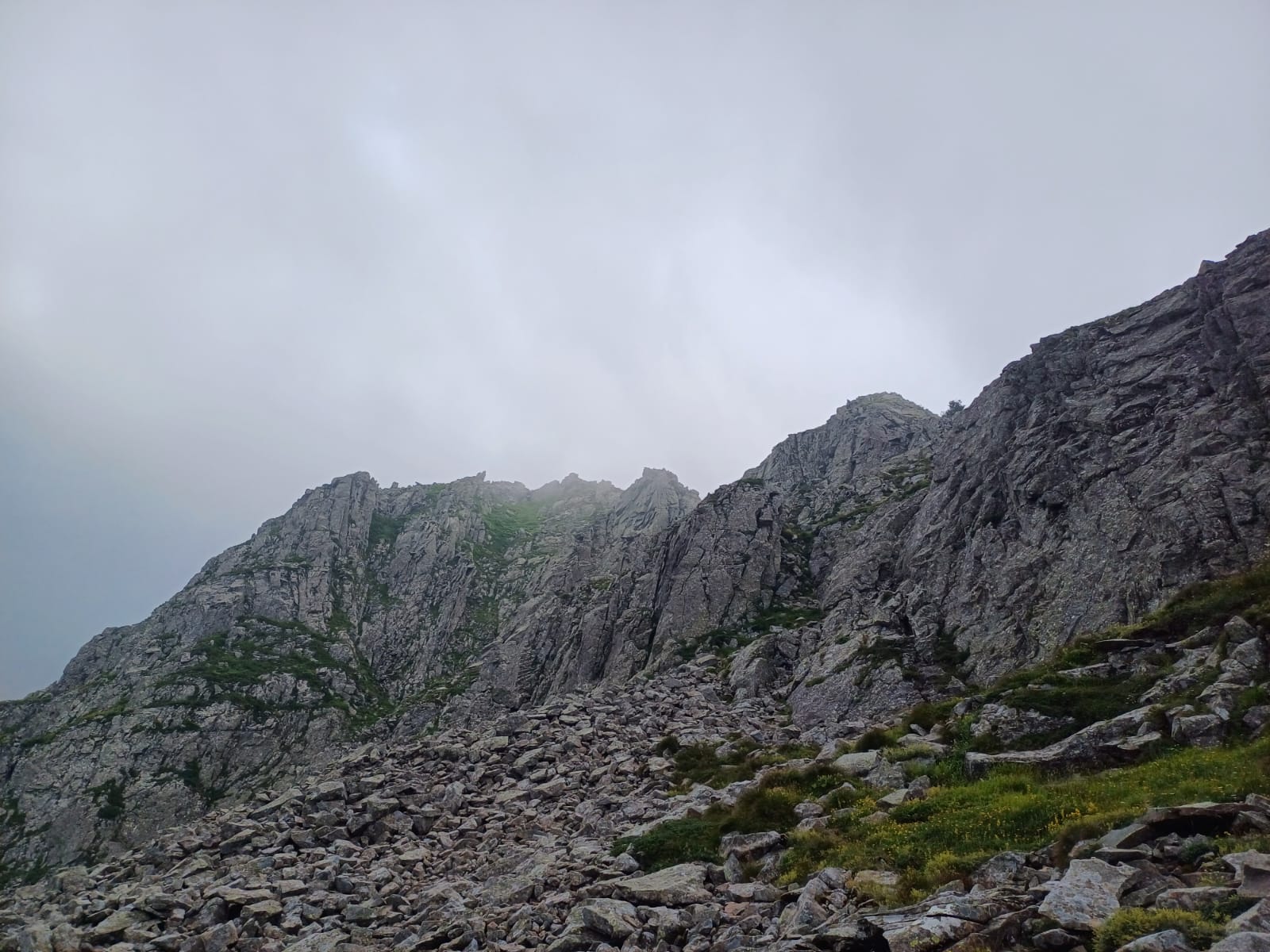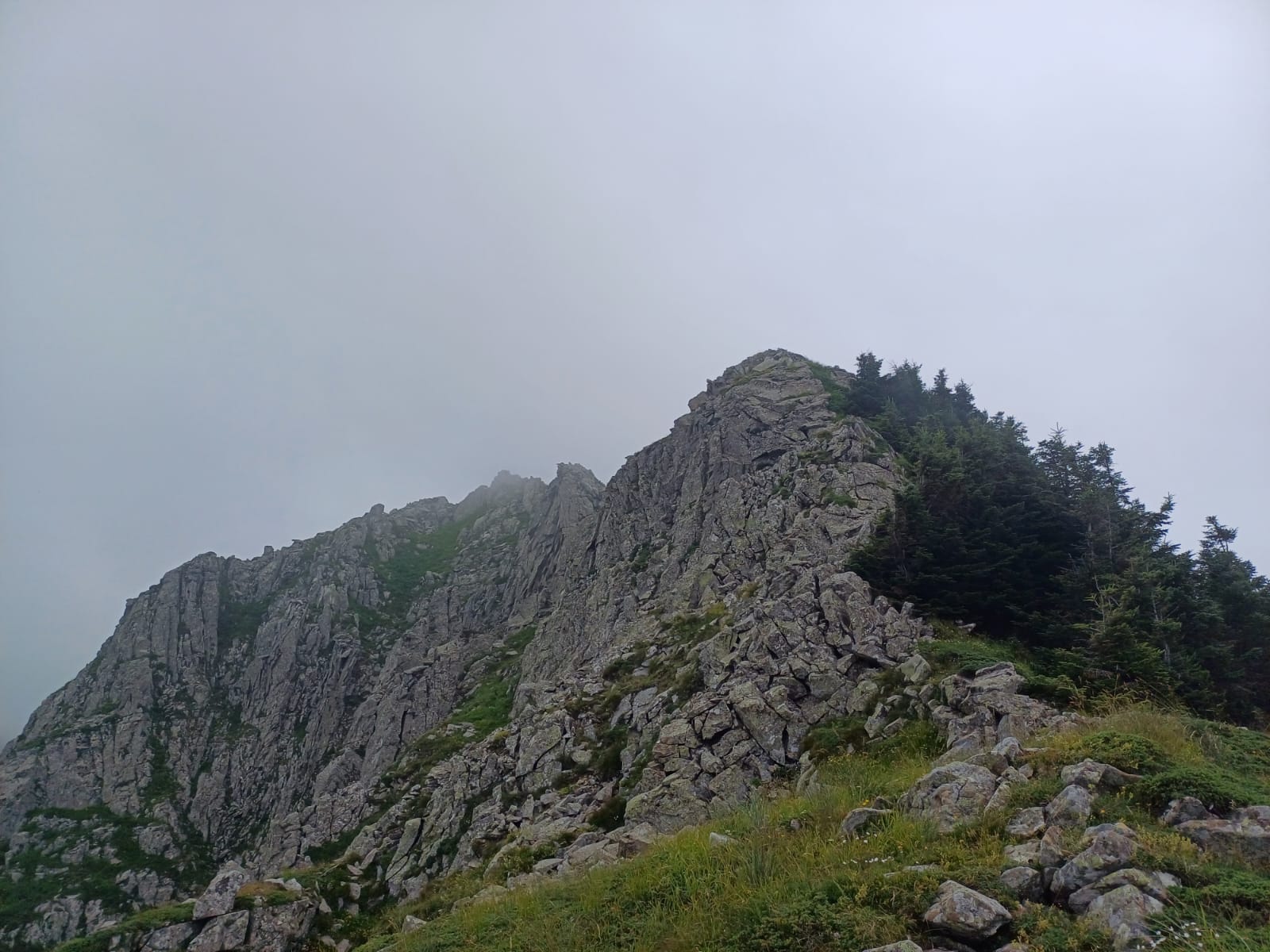 Dall’albergo nei pressi del quale abbiamo lasciato l’auto, si imbocca una sterrata che conduce ad un gruppo di villette che si attraversa, penetrando poco più avanti nella faggeta. Si procede al suo interno seguendo l’ottima traccia contrassegnata GEA n° 00 in direzione del Bivacco Rosario. Avanzando in leggera/moderata pendenza, si transita a fianco di piazzole di carbonaia e si raggiunge un piccolo ripiano con masso dove a sinistra si stacca il sentiero n° 649A per Cerreto Laghi. Si prosegue diritto, perdendo successivamente quota per un breve tratto, per poi riprendere a salire, sempre comodamente, per l’ottimo sentiero. In seguito la traccia attraversa una radura con caratteristici massi erratici, per poi proseguire all’interno della splendida della faggeta guadagnando lentamente quota. Dopo aver incontrato il bivio con il sentiero n° 96 – che si stacca a destra e che si ignora – si risale piuttosto ripidamente il margine sinistro di un’altra radura con rigogliosa vegetazione. Il sentiero piega poi a destra onde attraversare la radura in questione, rientrando infine nel bosco. Se ne esce appena dopo, approdando in un’altra panoramica radura, dove è possibile ammirare notevoli visuali della Cresta del Forame (a sinistra) e del roccioso crinale dello Scalocchio con il poderoso Gendarme (a destra). Il sentiero prosegue attraversando altre radure con pietraie ai lati, alternate a fasce boscose. Dopo una salita piuttosto ripida all’interno della faggeta, in cui si attraversa un solco asciutto, si sbuca nel magnifico anfiteatro di origine glaciale conosciuto come Valle dell’Inferno o Pezzalunga. Ci troviamo a poca distanza dal Bivacco Rosario, che è situato alla nostra sinistra, mentre alla nostra destra si ergono le verticali pareti nord dello Scalocchio e, più in basso, un estetico gendarme che emerge isolato dalle pietraie e che costituisce un valido punto di riferimento. Per ora la nostra prima meta da raggiungere è l’inizio della cresta N/W dello Scalocchio: a tal fine si dovranno attraversare ripide pietraie cercandosi in proprio il percorso migliore. Dovremo approdare sul filo del crinale divisorio proprio nei pressi di un isolato dente roccioso che già dal sentiero di avvicinamento al Bivacco Rosario abbiamo notato. Inizialmente, perdendo e ritrovando tracce tra cespugli di mirtillo, si sale puntando alla base del gendarme appena menzionato e, una volta giunti poco sotto quest’ultimo, si incomincia a procedere in traverso, o leggero obliquo ascendente, per pietraie alternate e strisce erbose. Scomodamente si giunge alla base del verticale spigolo di uno sperone roccioso, aggirato il quale si prosegue sempre per pietraia prestando la massima attenzione alla presenza di numerosi blocchi instabili che rendono il cammino costantemente incerto. Aggirata una costola rocciosa, si scende per pochi metri e poi si risale rasentando le rocce basali, per poi continuare ad attraversare la successiva fiumana detritica puntando ad un grande masso con verticale paretina. Lo si raggiunge e si sale scomodamente contornandolo a sinistra, continuando poi verso destra passando sotto altri grossi massi. Si sale brevemente per pietraia, giungendo finalmente in vista del crinale La Tesa/Scalocchio a cui si approda poco dopo. Ci troviamo sulla destra del dente roccioso prima menzionato: ci si dirige quindi verso quest’ultimo aggirandolo a sinistra, rimontando poi sul filo del crinale. Di fronte a noi si erge il primo risalto della cresta N/W dello Scalocchio, caratterizzato da un verticale spuntone separato dalla restante cresta da un canale/camino. Seguendo il crinale si giunge in breve sotto il risalto in questione, che rappresenta il punto d’attacco vero e proprio della parte “alpinistica”. Si incomincia l’arrampicata obliquando a sinistra per alcuni metri su grossi blocchi (I°/I°+), cui fa seguito una ripida fessura (II°). Appena dopo si effettua un delicato traverso di pochi metri (II°) mediante il quale si penetra nel già menzionato canale/camino. Dal fondo di quest’ultimo si supera una ripida strozzatura (II°-), raggiungendo infine una selletta delimitata a destra dal torrione verticale e a sinistra da una ripida paretina. Si scala quest’ultima sfruttando ottimi appigli e appoggi (II° all’inizio, poi I°), approdando così al vertice di questa prima e più impegnativa sezione di cresta. Si continua facilmente lungo il filo del crinale, superando un tratto con grossi blocchi appena a sinistra del limite superiore di un bosco di conifere che degrada nel versante lunense. Dopo un facile risalto si risalgono lastre rocciose tenendosi preferibilmente lungo il bordo destro, dove sono più abbondanti gli appoggi (I° e II°-). Raggiunta la sommità di un’altra quota del crinale divisorio, si continua facilmente aggirando a destra un piccolo spuntone (o superandolo direttamente), fino ad approdare ad una sella dove alla nostra sinistra precipita un ripido canale verso il sottostante Vallone dell’Inferno. Dalla forcella si scala il soprastante ripido spigolo tenendosi a destra del suo filo, arrampicandosi per grossi blocchi con cespugli (I°/I°+). Dopo aver scavalcato o aggirato un’altra altura, si scende ad una selletta da cui ci si arrampica per facili ma ripide rocce (I°+). Giunti sotto il blocco sommitale si scende in obliquo per due o tre metri, prestando la massima attenzione alla presenza di massi instabili. Dopo aver aggirato a destra altre rocce e percorso un ultimo tratto di crinale erboso, si guadagna con soddisfazione la sommità del Monte Scalocchio, 1851 m, caratterizzata da una piccola croce. Dalla cima si continua per poco lungo l’esposta cresta erbosa in direzione dell’imponente parete ovest del Gendarme.