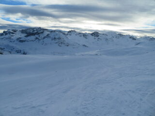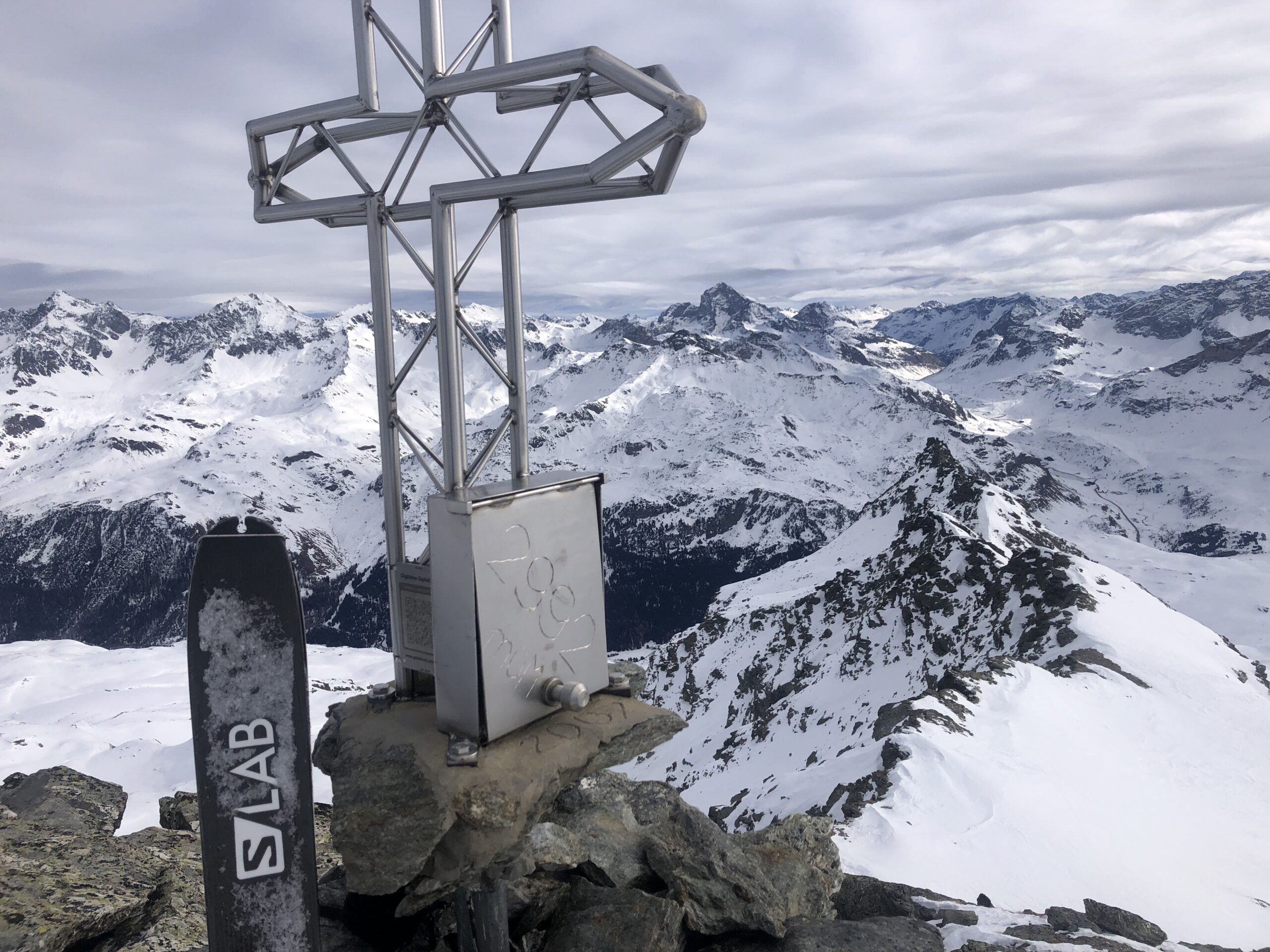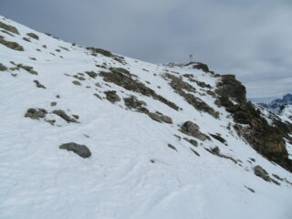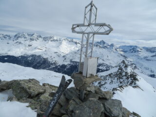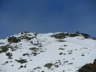 Visto la bella neve di settimana scorsa torno in zona. Ovviamente condizioni mutate ma la neve per quanto non abbondante rimane sufficiente. Salita fino in cima con gli sci ma per gli ultimi 200mt rampant molto utili. Discesa dalla vetta su neve dura stando prevalentemente sulla sinistra e cercando i varchi si neve tra i molti massi scoperti. A tratti crosta portante da vento a tratti farina compatta trasportata, comunque ben sciabile la prima meta, su neve pistata la seconda parte . Nel complesso mi sono divertito a sciare. Salita rapida senza problemi. Qualche nuvola e solo un paio di skialp dietro. Bella giornata.