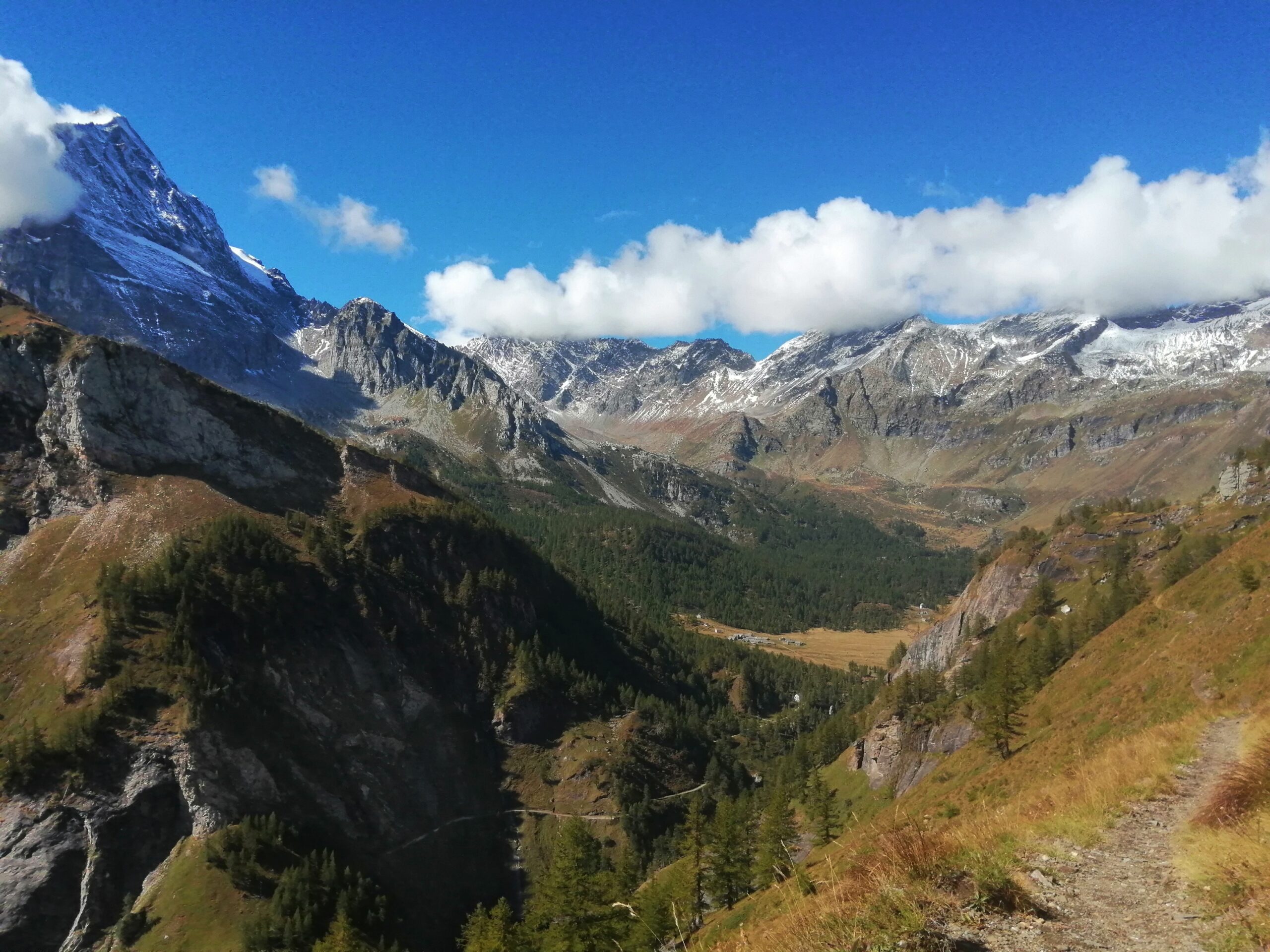 Da Cornù 1750 m, seguendo le indicazioni, si attraversa all’alpe Ciamporino 1940 m. Si sale quindi al colle di Ciamporino 2283 m (pochi segnavia ma percorso evidente anche “grazie” alla pista sciistica che scende dal colle). Dal colle si scende all’alpe Bondolero 1912 m (segnavia praticamente assenti, ma percorso evidente se non c’è nebbia per il terreno privo di vegetazione). Dall’alpe Bondolero (percorso nuovamente ben segnato) salire al passo di Buscagna 2280 m (tratto con difficoltà EE) e quindi al Monte Cazzola 2330 m. Dal M. Cazzola si scende all’alpe Devero passando dalla’alpe Misanco 1907.