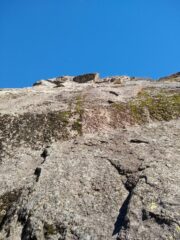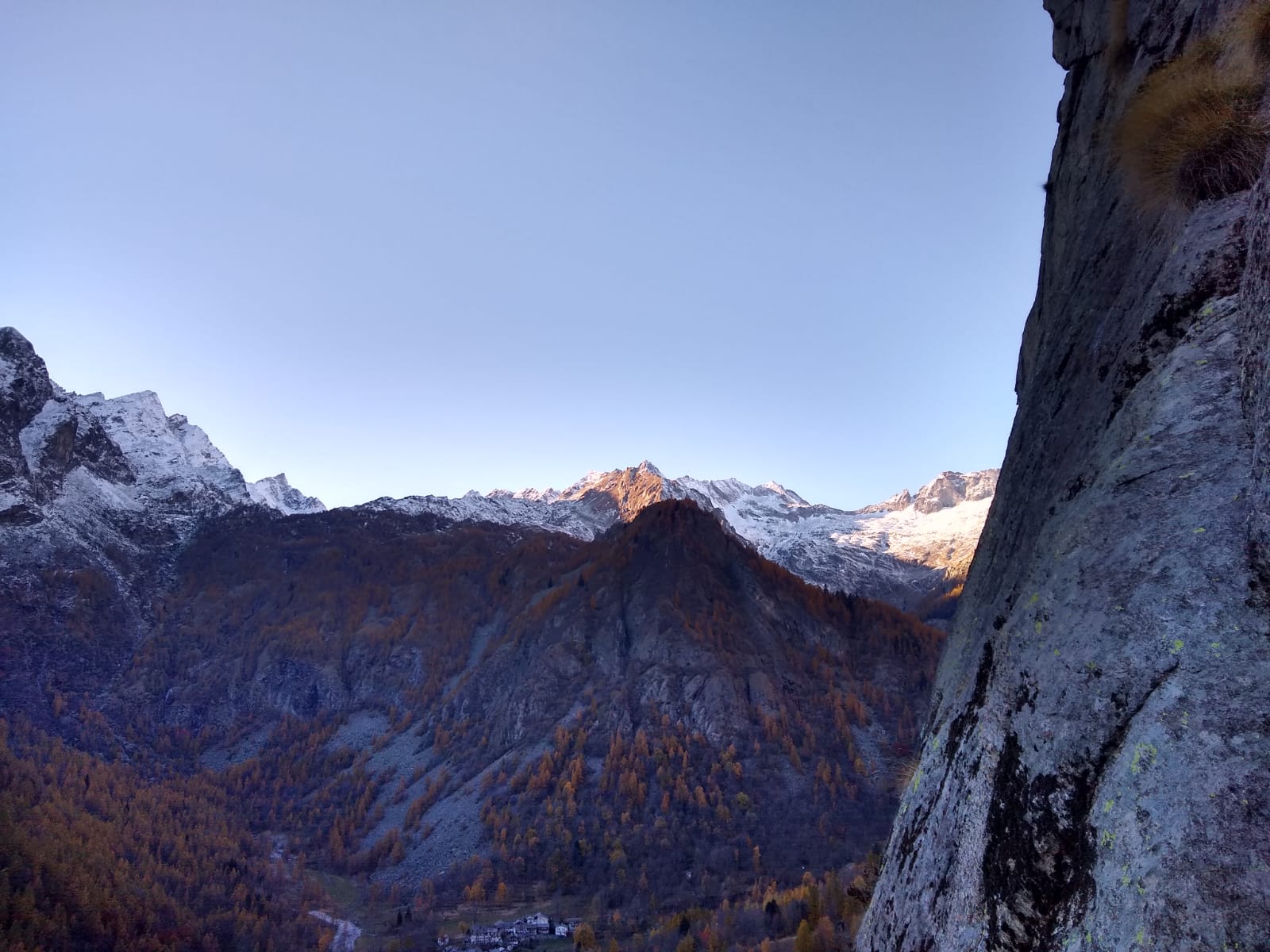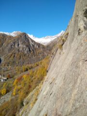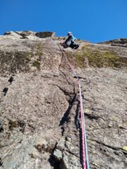 La Schiappa non perde mai il suo fascino e in queste giornate autunnali secondo me è ancora più bella. Sfruttato pienamente lo spiraglio di luce e tepore concesso e poi giù in piola dove la macchina segnava 1°C. La via a me piace un sacco. Non molla un secondo e sebbene i gradi non siano estremi basta sbagliare un appoggio per trovarsi fregati. La chiodatura è leggermente più vicina delle vie di Manlio, ma è tutt’altro che ascellare: bisogna scalare. Molto contento di essere riuscito a fare il tiro di 7a, nonostante sia un periodo in cui sto scalando poco. Peccato che sia poco frequentata; La roccia è di qualità eccelsa come poche se ne trovano in giro, placca sì, ma ogni tanto le tacche bisogna tirarle.