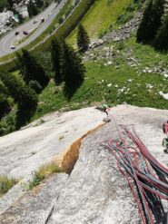 Non deve essere molto percorsa, c’è un po’ di erba che però disturba più che altro la vista, tranne sull’uscita dell’ultimo tiro, ma ormai si è fuori..