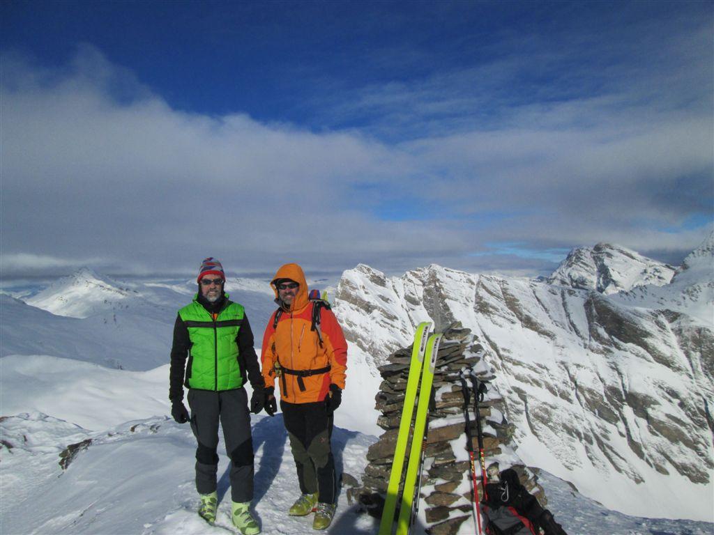 Discesa con neve ventata fino all’anticima poi 30 cm leggermente pesante e via via più leggera, pendii molto traccaiti ma si riesce a trovare neve ancora vergine.