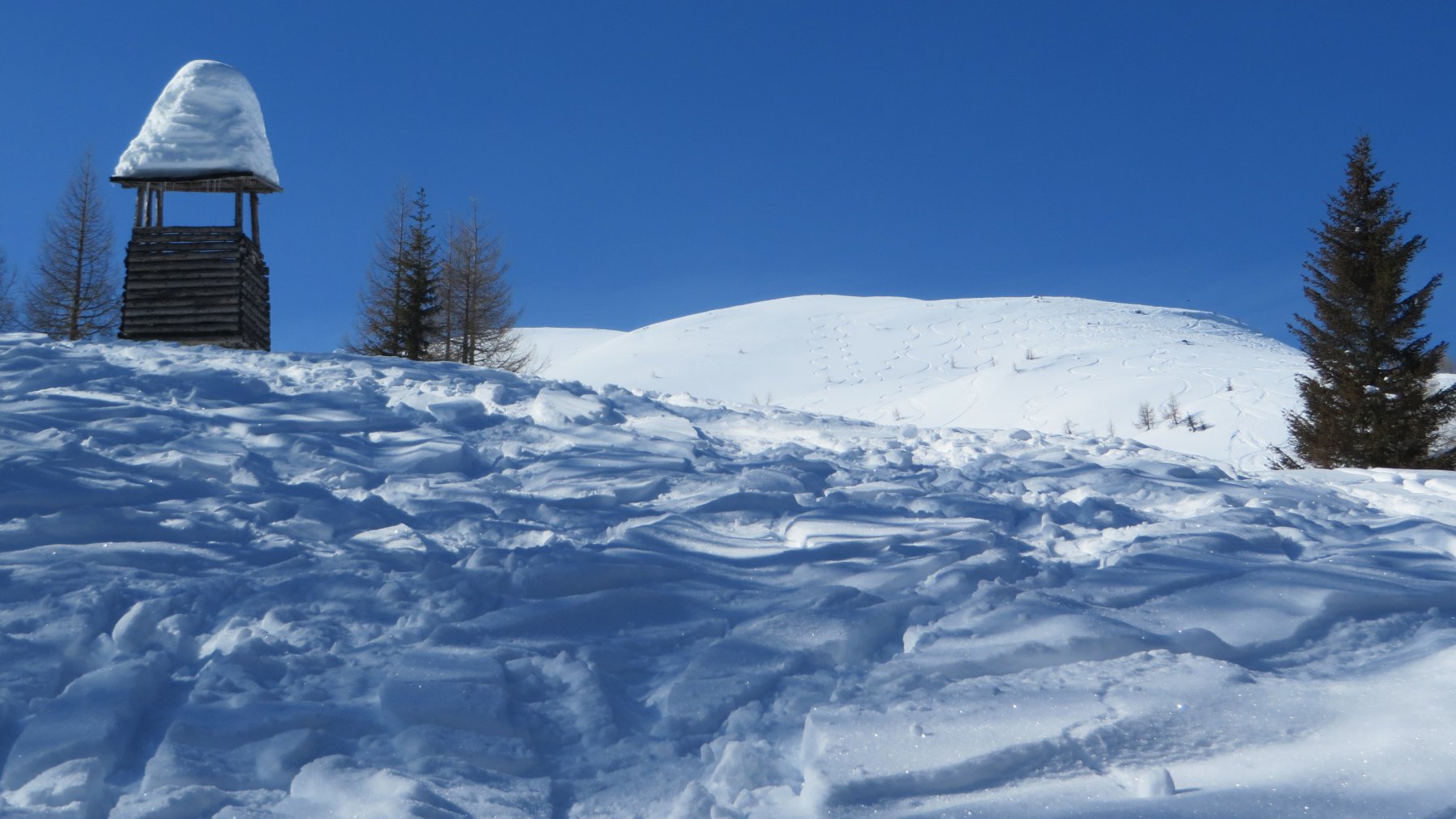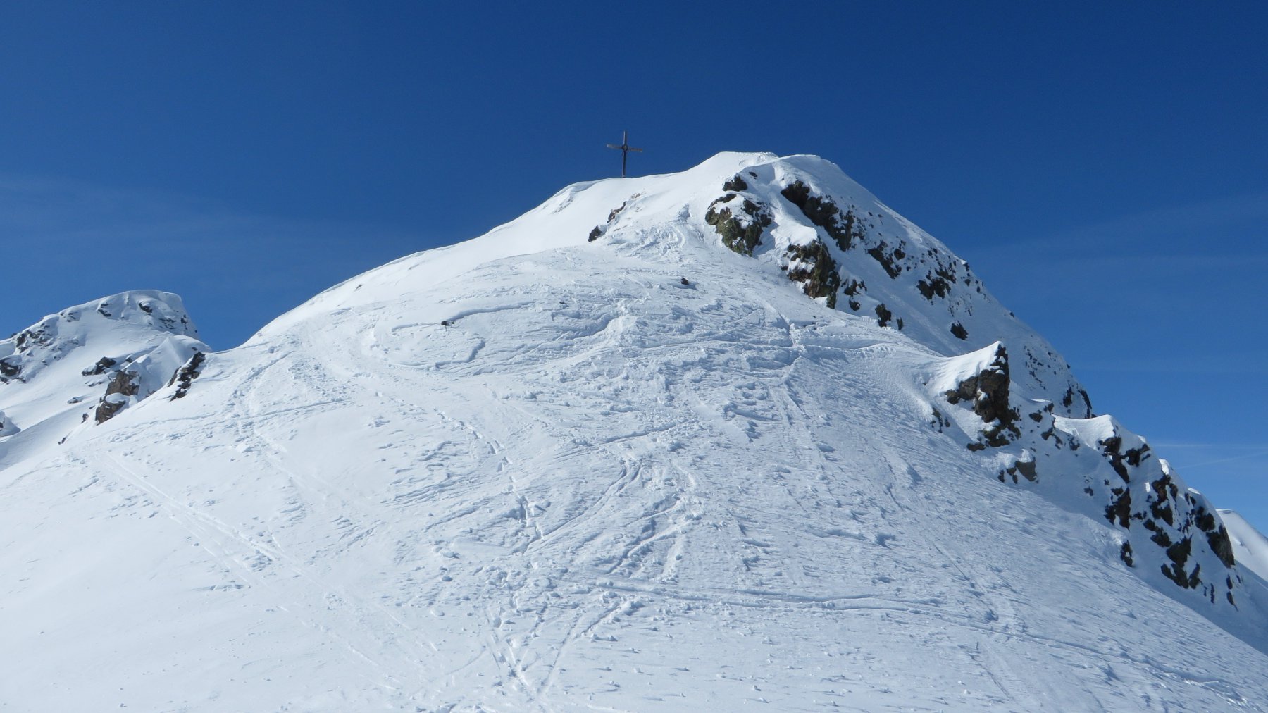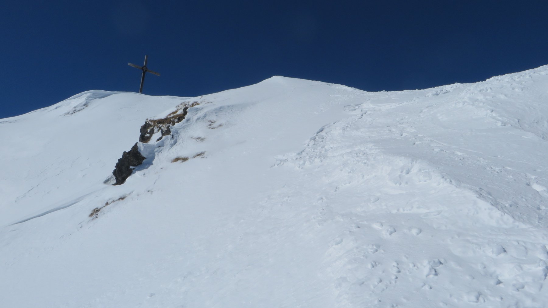 La cima si guadagna piegando gli ultimi 150mt verso SO per prendere gli ultimi 50mt la spalla NE, da fare eventualmente a piedi.
