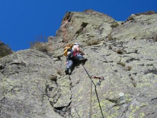 Oggi grande confusione! Siamo partiti giusti, ma ci siamo persi subito, finendo prima su No Limits, poi su una sosta di Luna Calante, quindi su Fior di Roccia e nuovamente su No Limits. Tolgo una stella solo per questo, poichè abbiamo fatto comunque un itinerario molto bello, sempre su roccia buona ed in una stupenda giornata dalla temperatura ottimale. In cordata con Ale.
