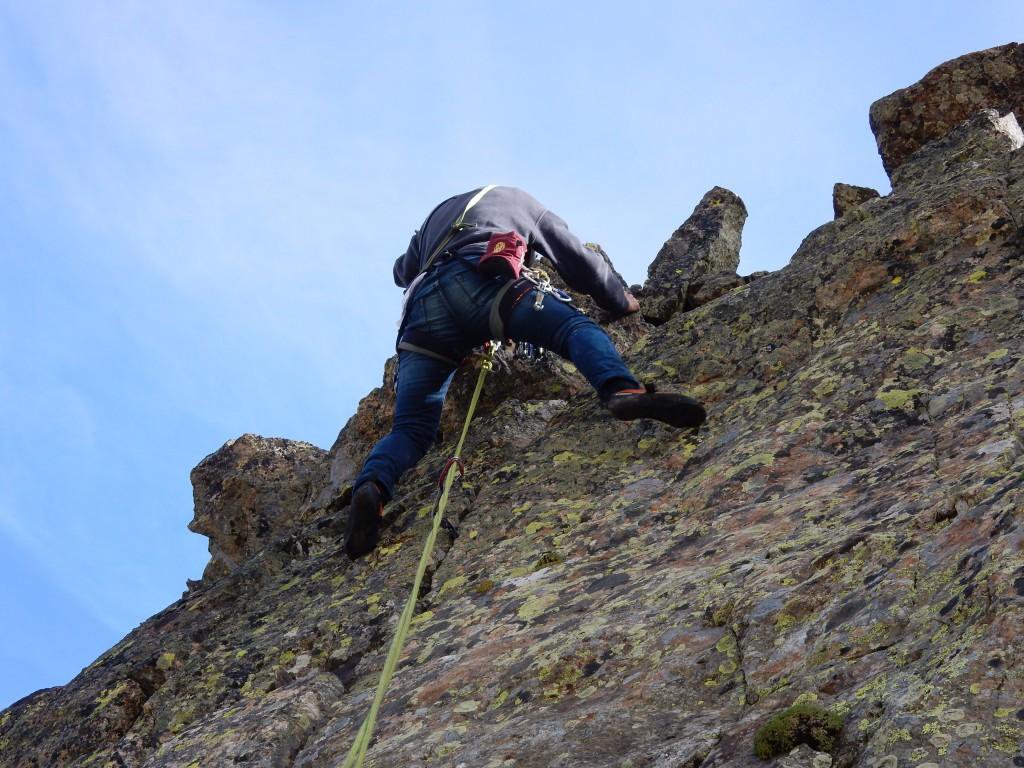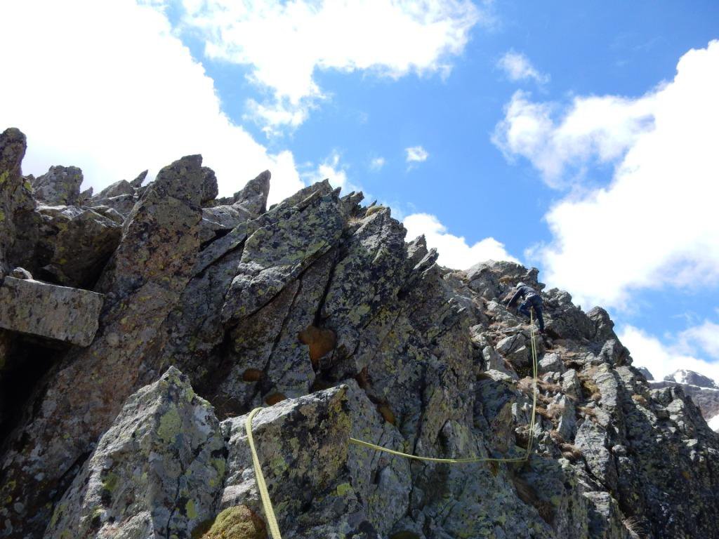 Discesa con 2/3 doppie di 20m ca (fettucce attorno a spuntoni lasciate in loco).