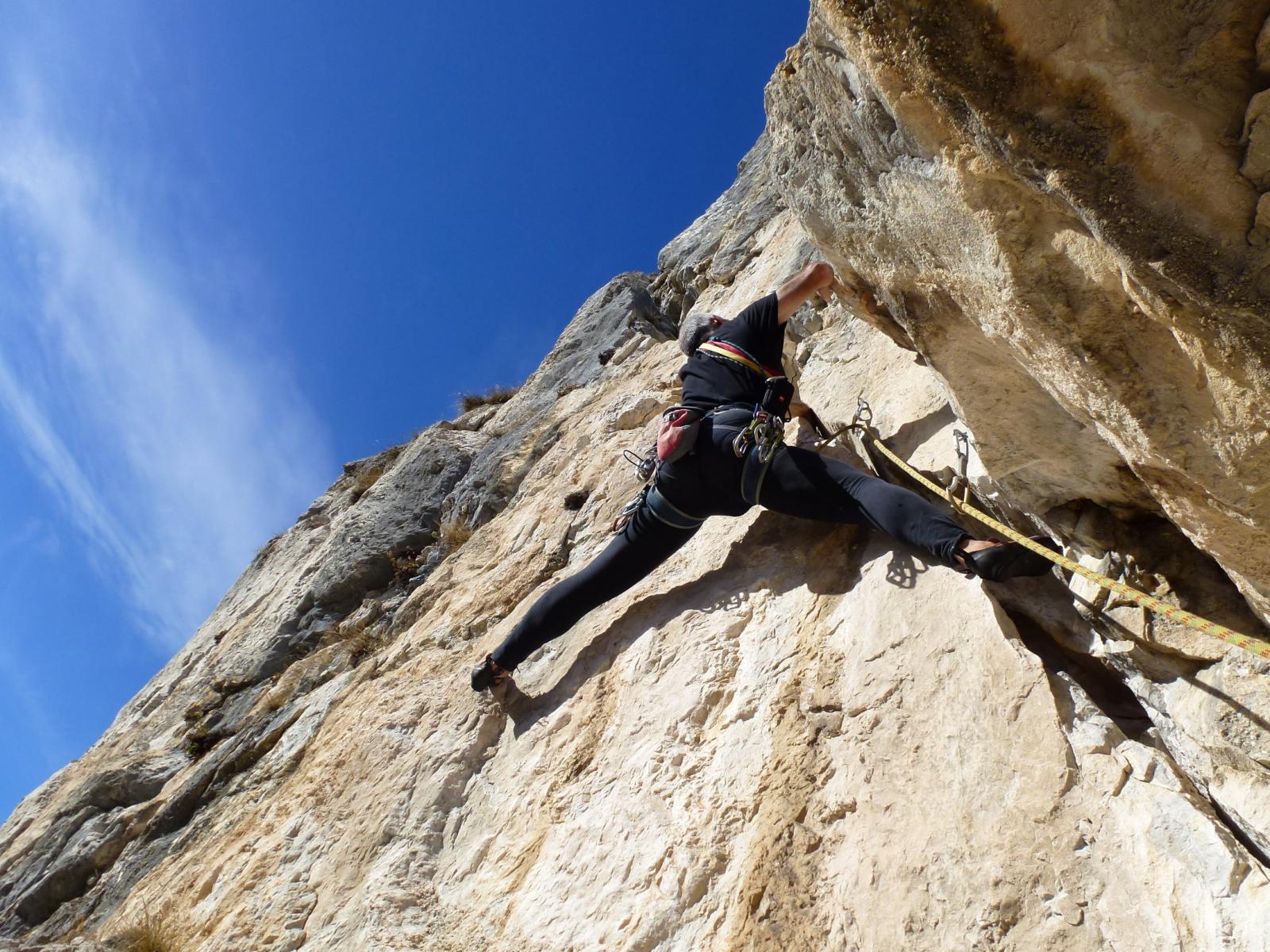 Piacevolissima arrampicata in ambiente ameno per diedri strapiombanti ben appigliati. Divertente e di soddisfazione. La variante diretta del primo tiro ha un passaggio davvero molto difficile anche se breve e probabilmente il grado 6a+ si riferisce a prima del distacco di un appiglio. Non azzardo valutazioni perchè è appunto molto breve e comunque si può risolvere agevolmente in artificiale.