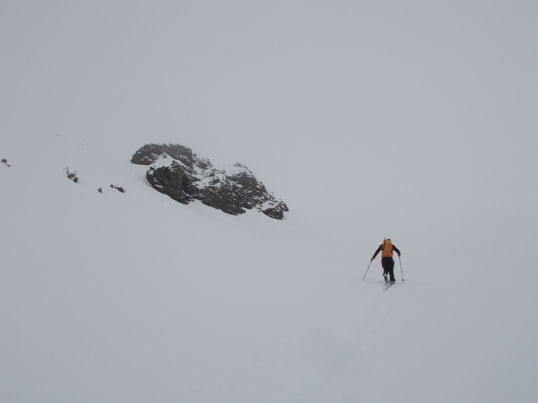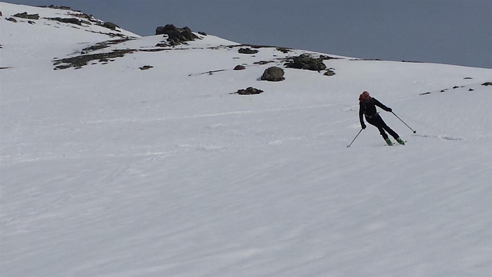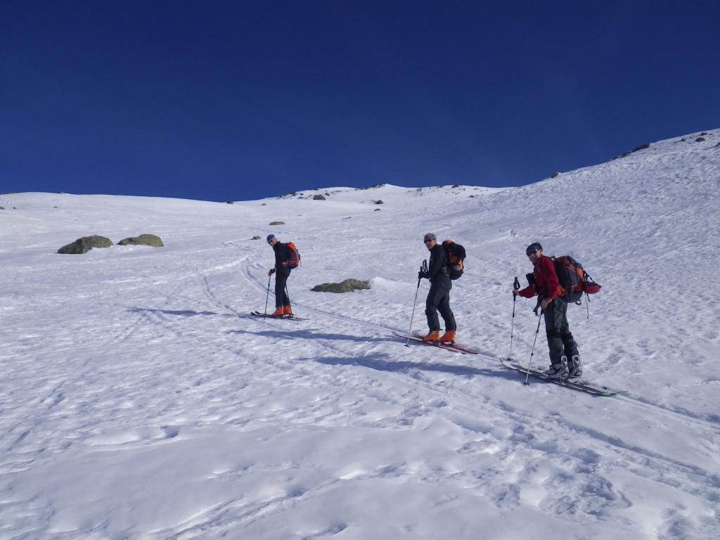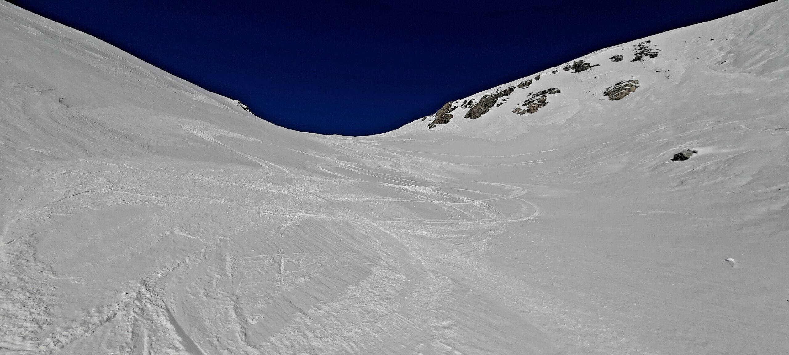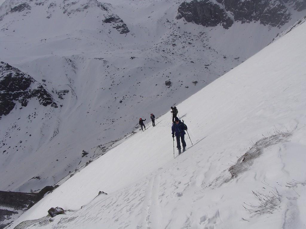 Dopo alcuni tornanti la si abbandona per risalire a dx un canalone prima ampio e poi via via un po piu’ stretto ( attenzione alle slavine che puntuali scendono sul versante sx di salita).