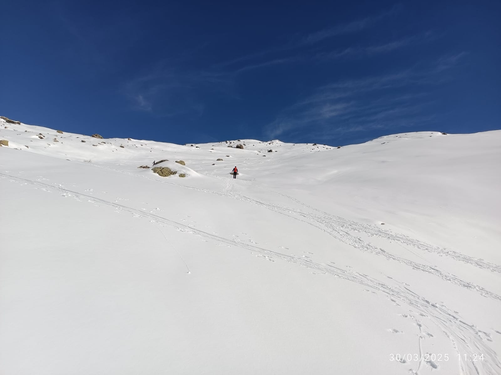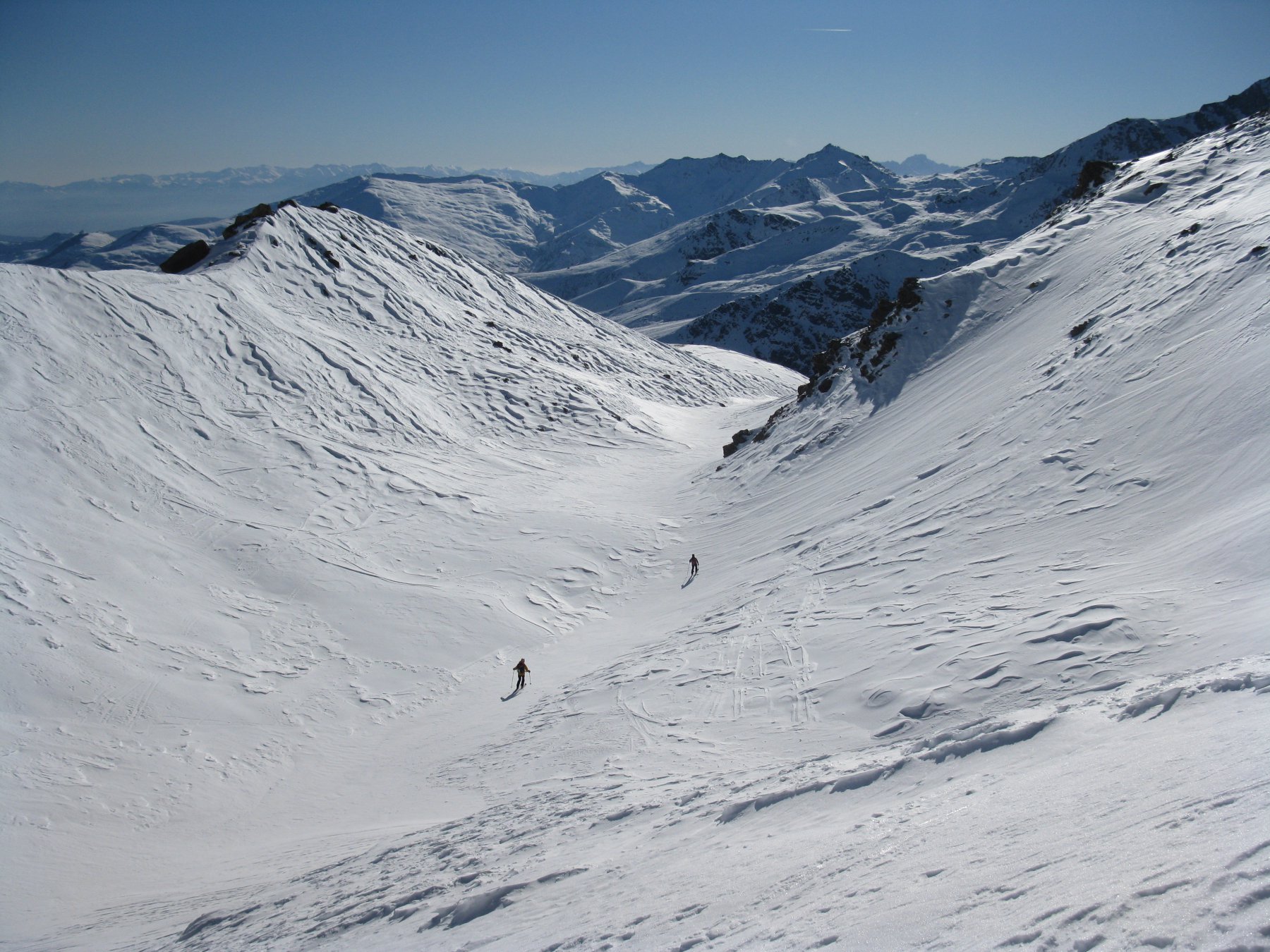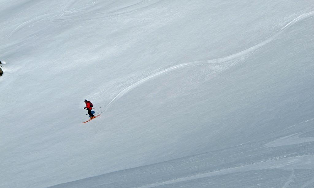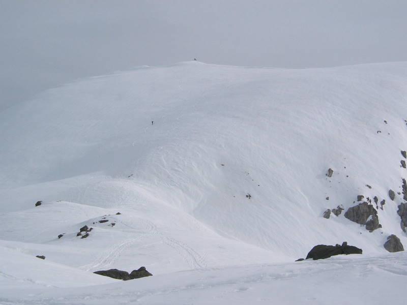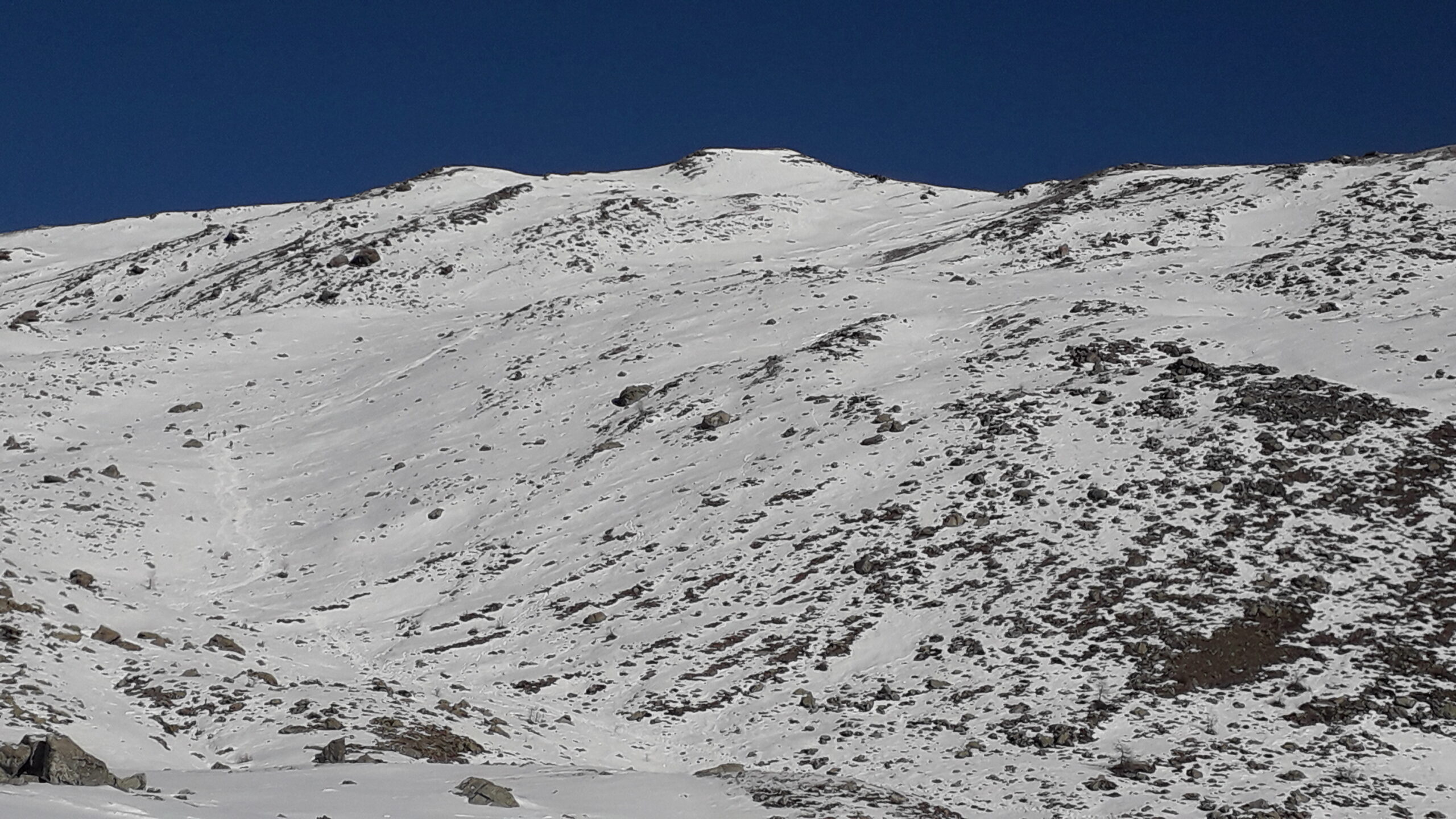 Dopo alcuni tornanti la si abbandona per risalire a dx un canalone prima ampio e poi via via un po piu’ stretto ( attenzione alle slavine che puntuali scendono sul versante sx di salita).