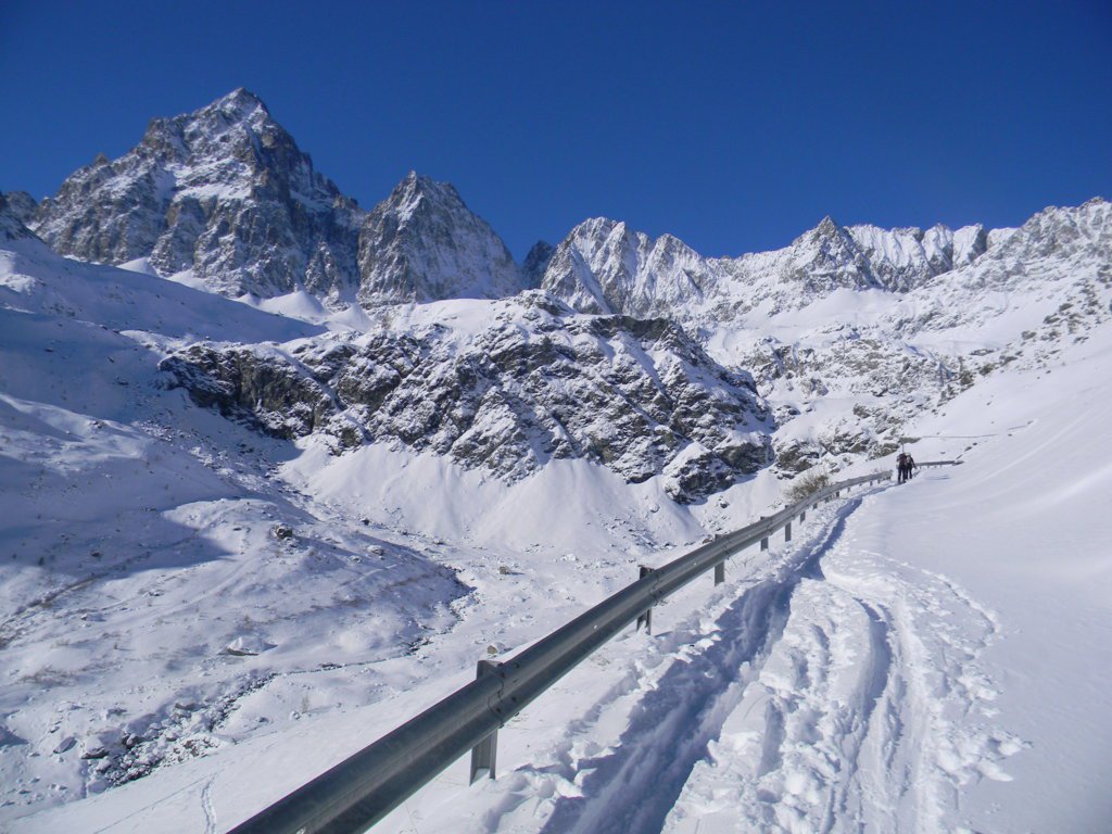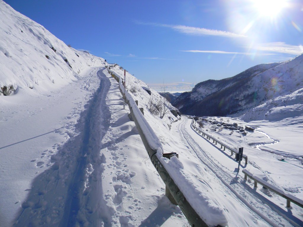 Dal pian della Regina si segue la strada per il Pian del Re (chiusa nel periodo invernale).