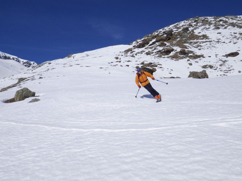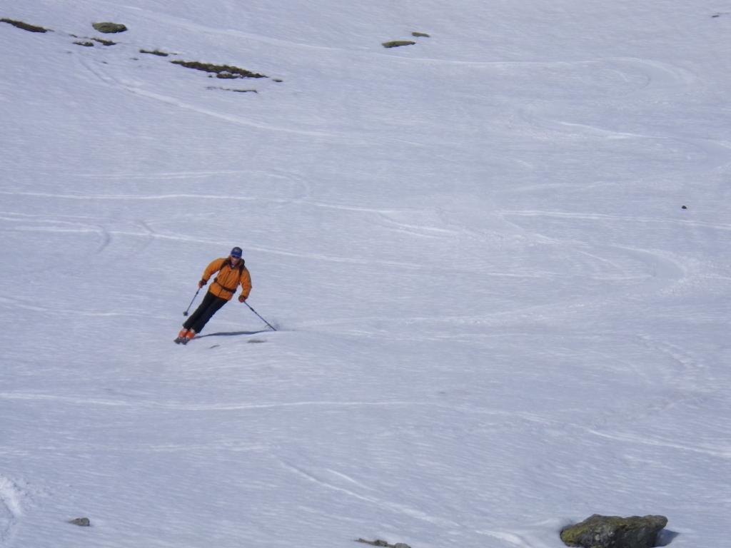Cercando i pendii con migliore esposizioneNe ne è uscita una discesa oltre ogni aspettativa bella e divertente .Solo *** stelle per la crosta nella parte alta e scarsita di neve in quella bassa.Ma se si segue la strada no problem.