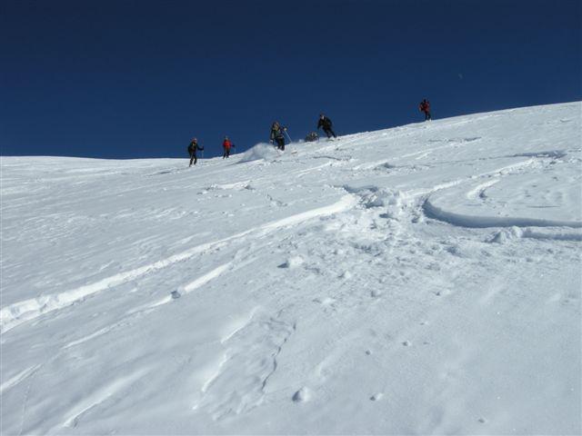 Ancora nevi asciutte e farinose sui pendii a nord sopra i 1800, nel complesso non ancora del tutto trasformata e continua