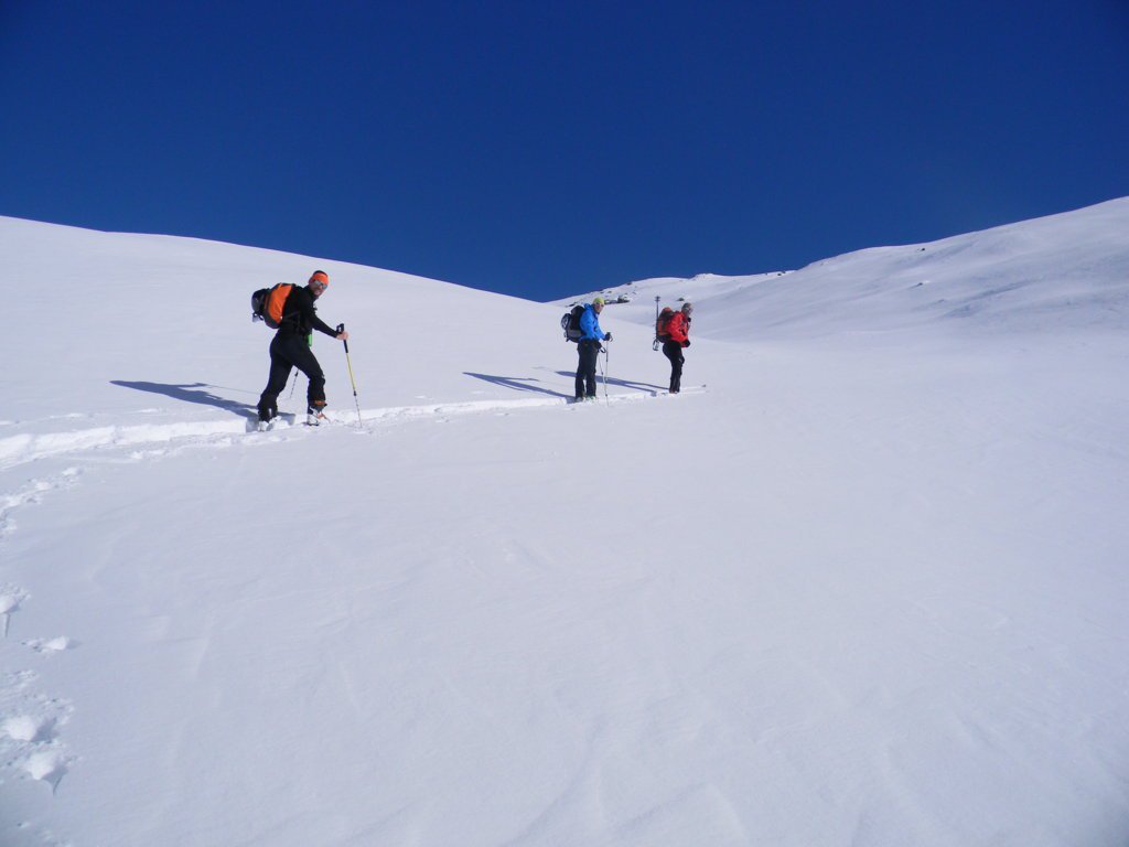 bella giornata con bella neve e bella la discesa, ci siamo tracciati la via, un solo skialp sui nostri passi e null’altro, in cima un vento gelido, che caratterizza questa cima, non ci ha fatto permanere…