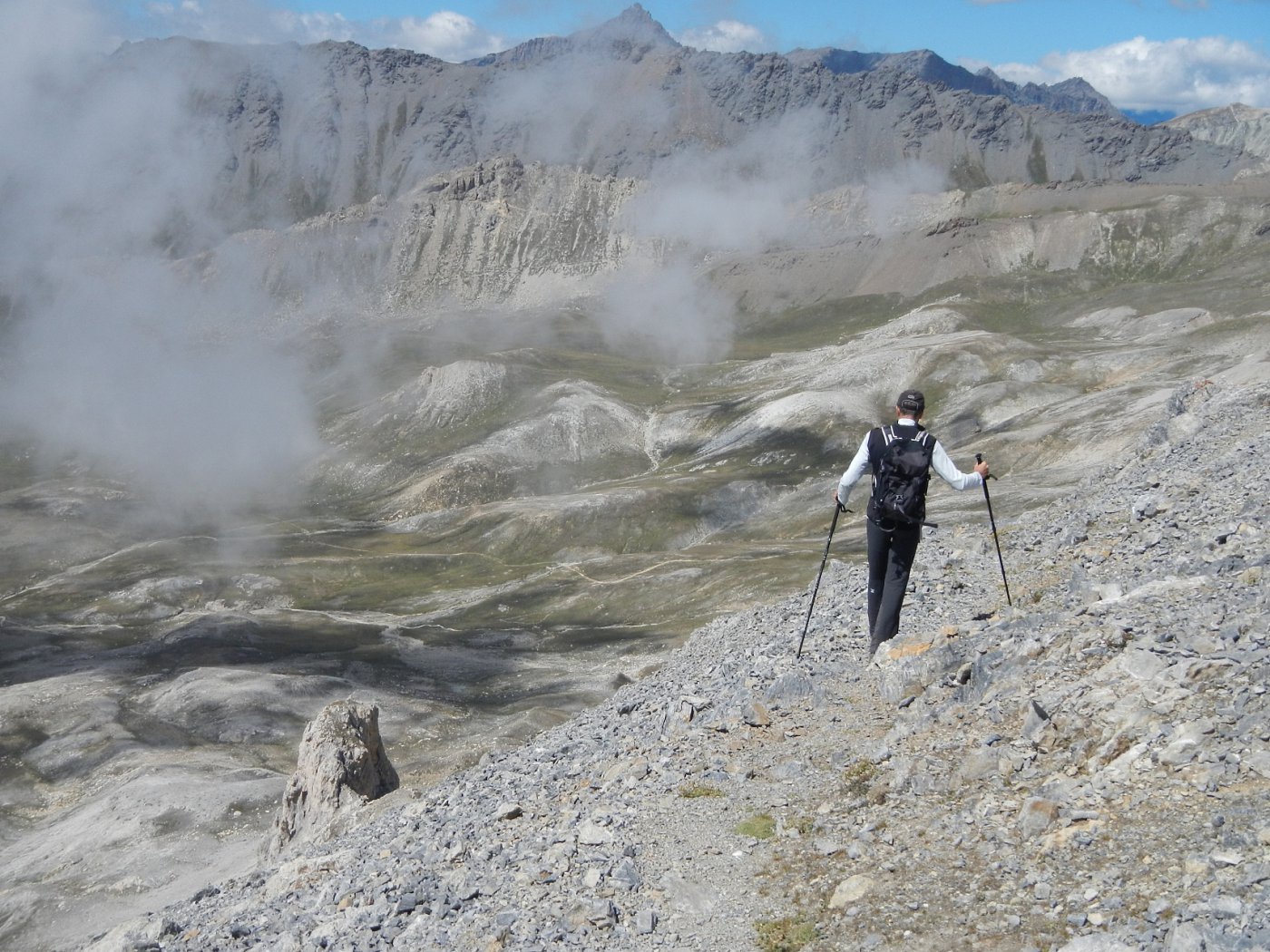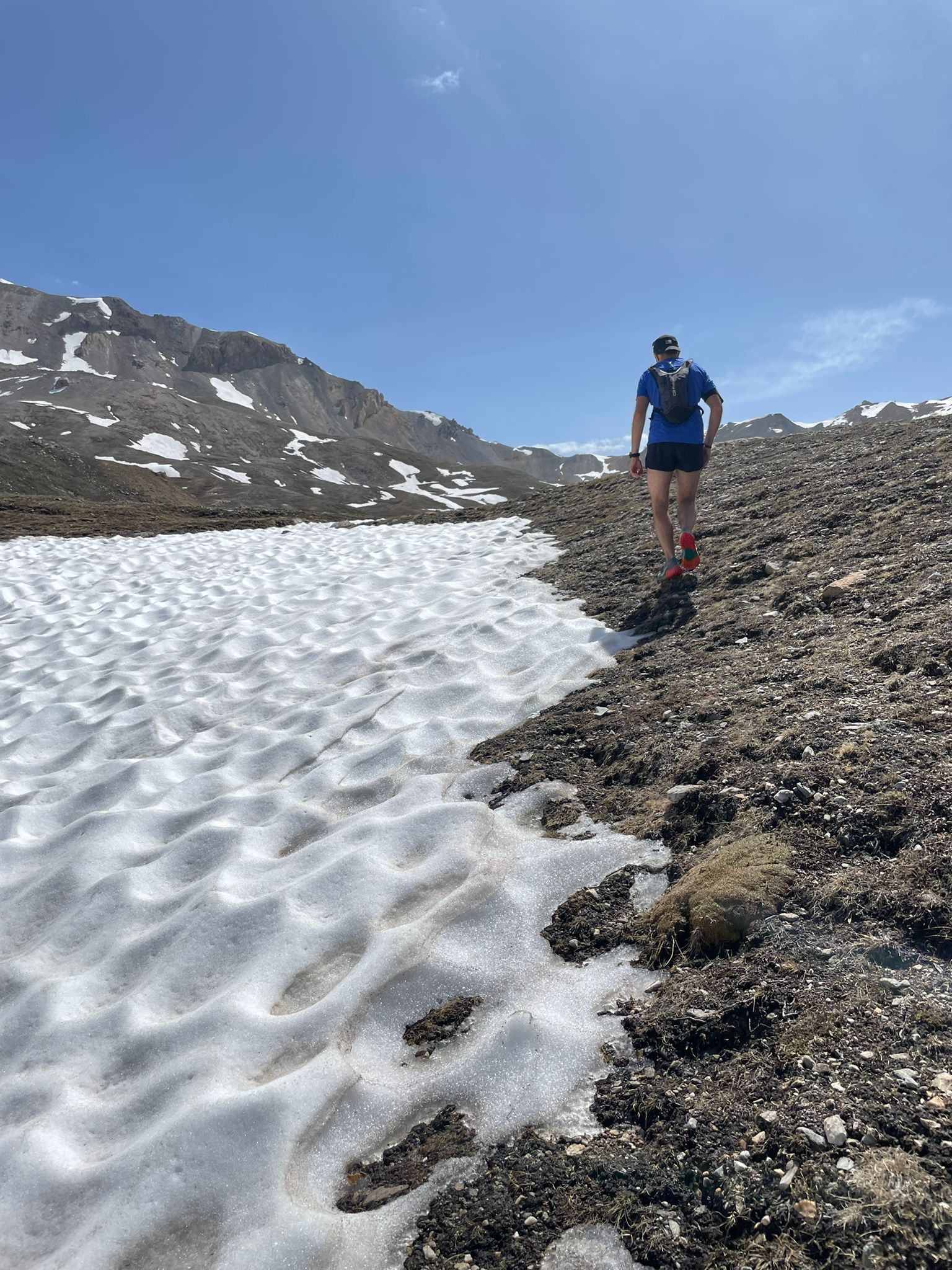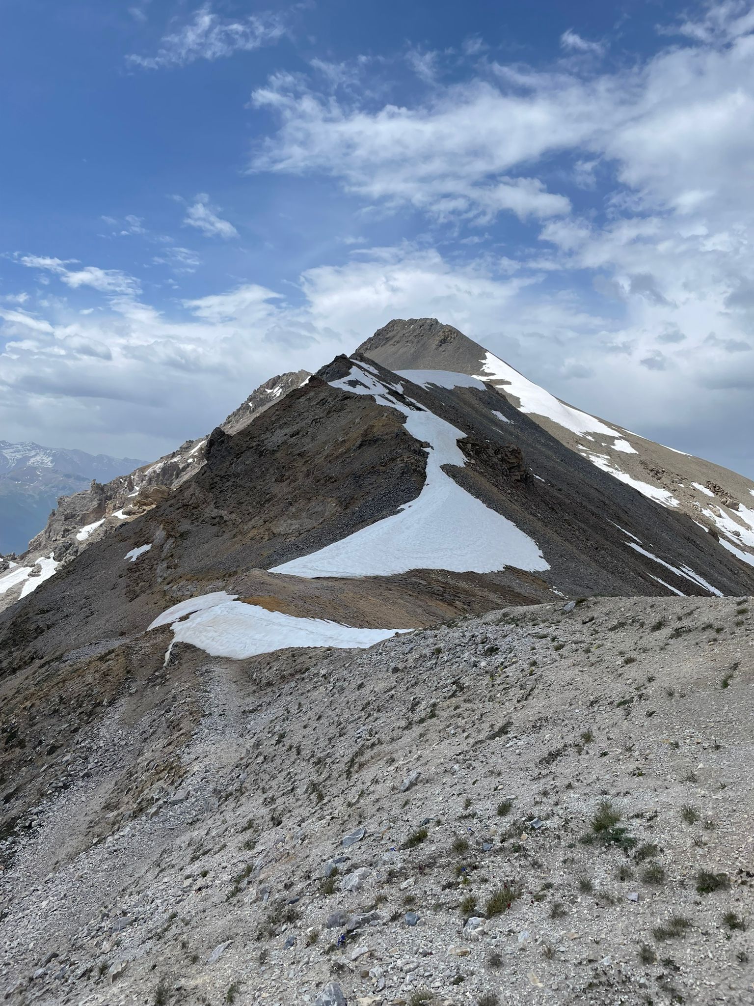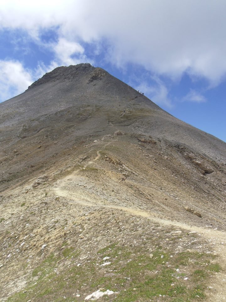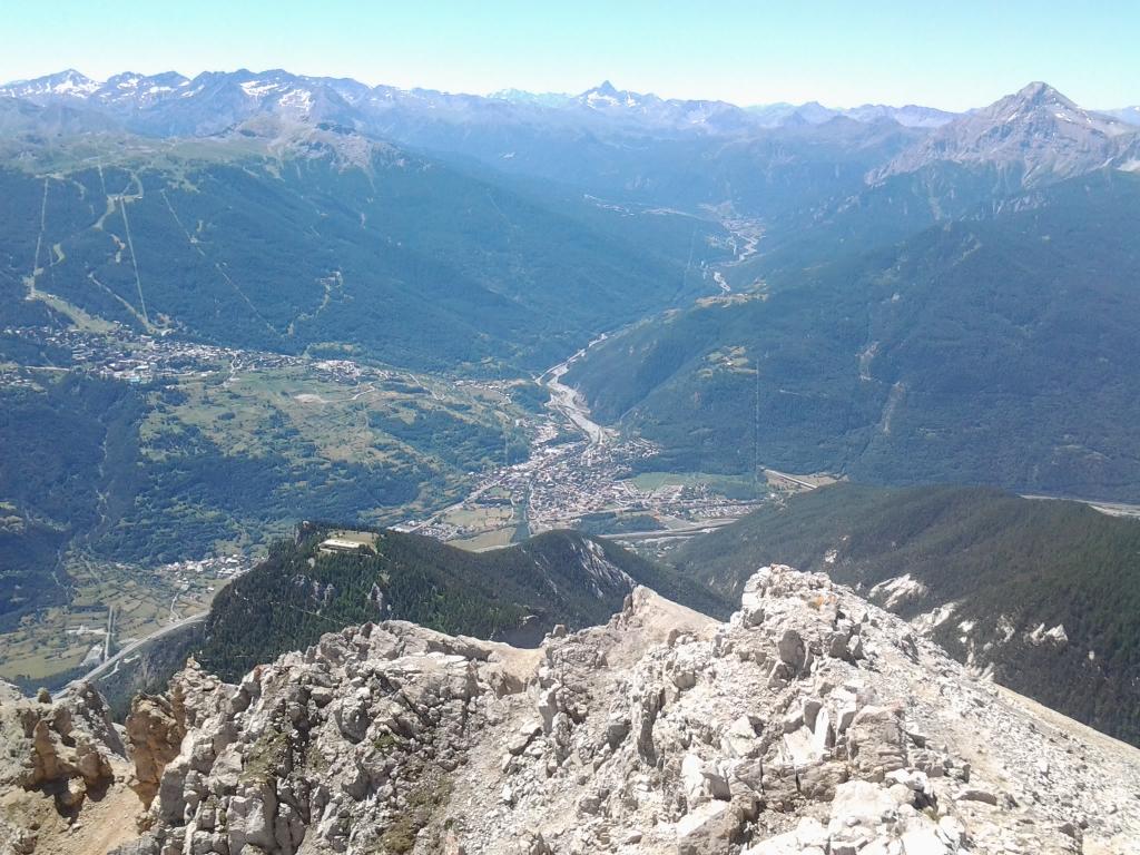 Di li’ si percorre la cresta N del Seguret con qualche saliscendi iniziale e poi con un ultimo strappo su detriti faticosi si raggiunge la vetta (2926 m). Una traccia continua a percorrere in leggera discesa la cresta fino a portarsi ad una croce (2890 m circa) con bella vista sulla valle e in particolare su Oulx, situata quasi 2000 m piu’ in basso.