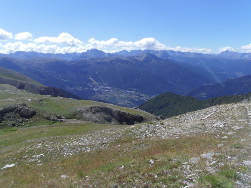 Risalire la ripida stradina asfaltata fino alle costruzioni: trascurare la stradina a dx e superate le ultime case imboccare il sentiero che prende quota nel bosco. Si prosegue per il sentiero principale trascurando i vari sentieri laterali, raggiungendo a 2050 m circa il sentiero proveniente da Signols.