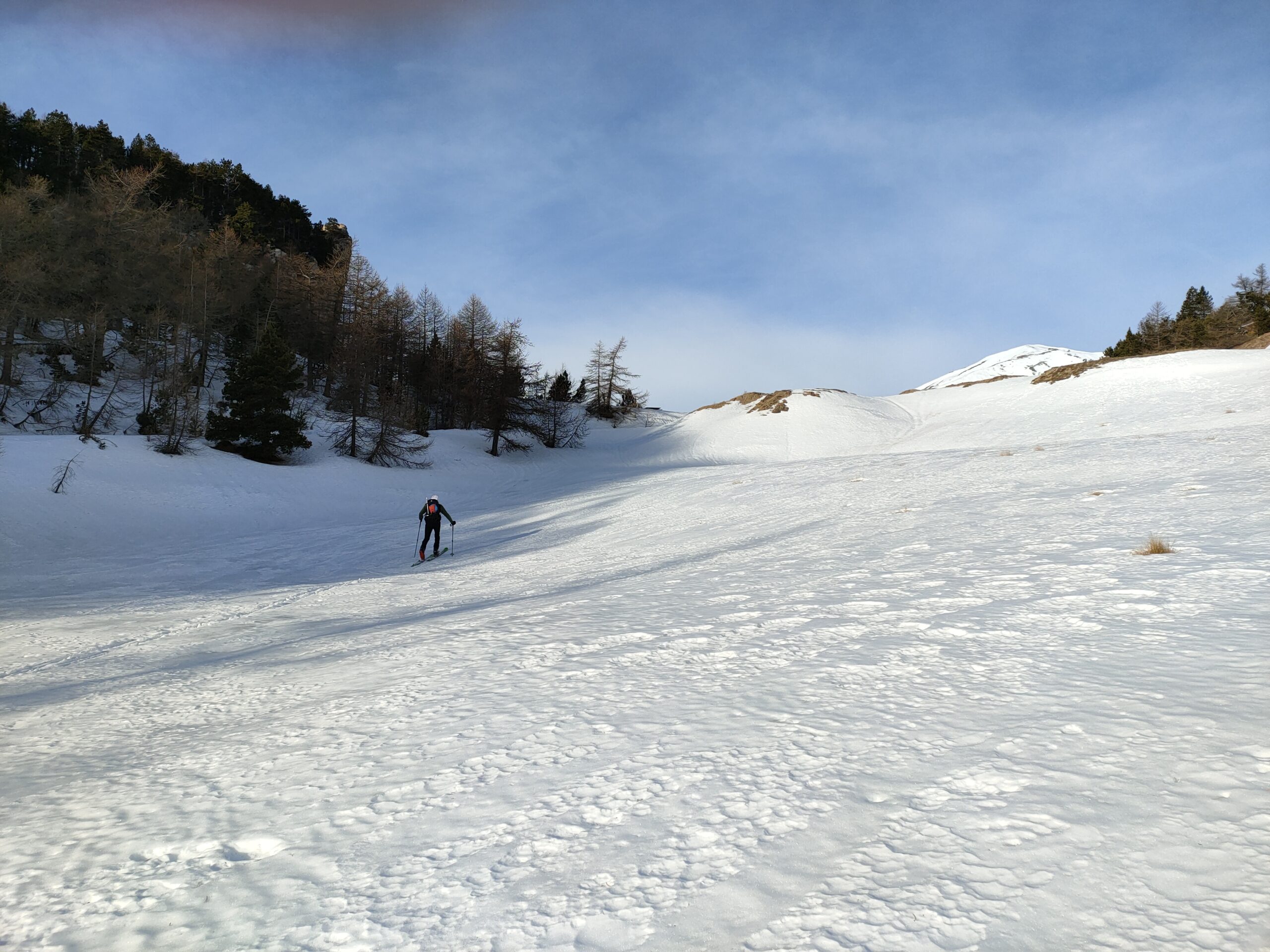Da effettuarsi con condizioni di scarso innevamento alle basse quote e possibilmente raggiungendo il colletto Pramand con l'auto per evitare di sobbarcarsi un lungo avvicinamento su strada.