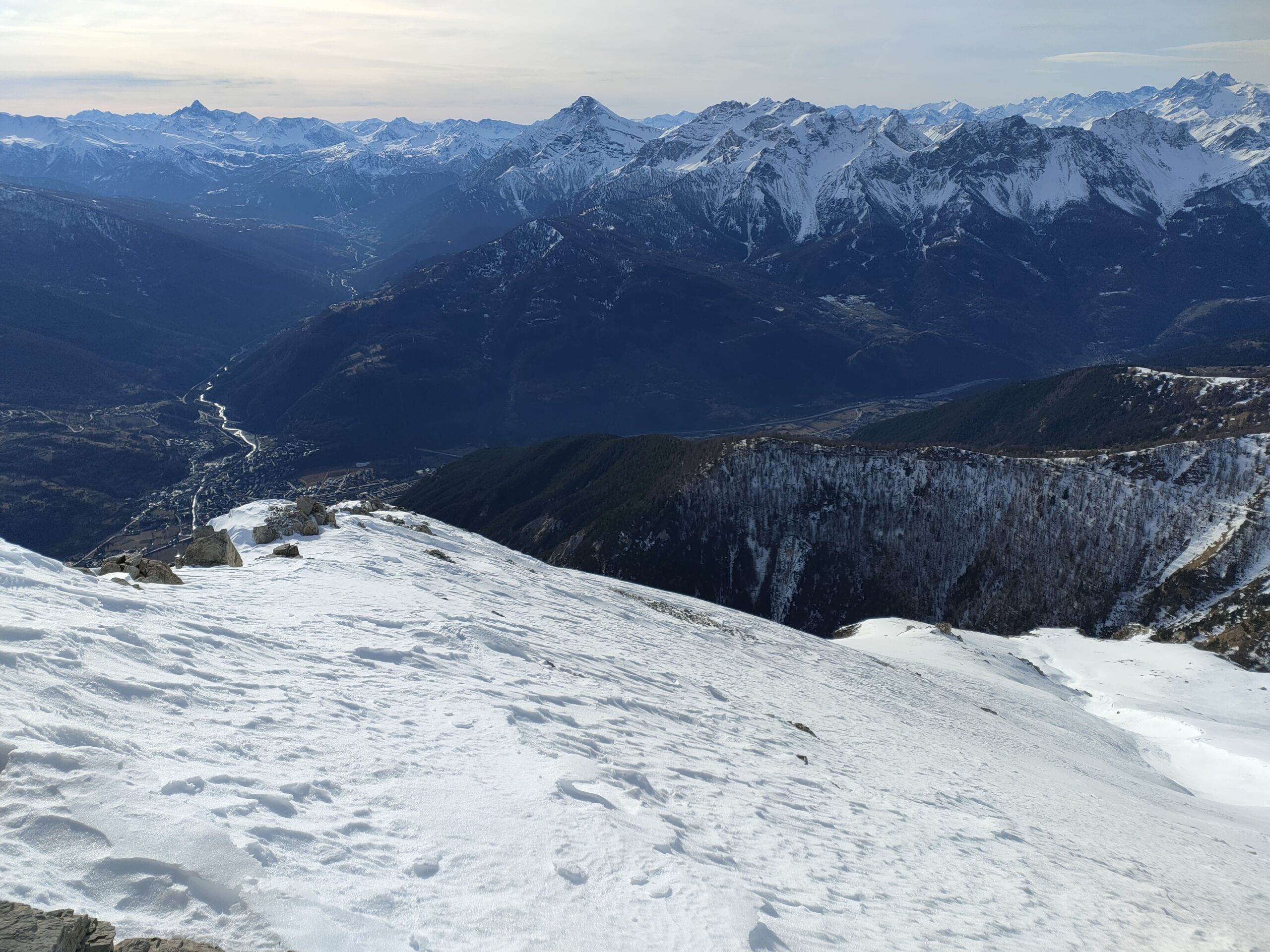 Si arriva comodi in auto fino a 1640 mt, poi stop per una slavina. La strada è ancora lunghetta ma passa bene. La neve continua inizia prima dei tornanti sotto il colle Pramand. La galleria è in condizioni molto migliori rispetto a qualche anno fa. Fuori dalla galleria inizia la festa, ma la neve è ancora scarsa. Comunque tutto raccordato. Ben innevato il bel pendio sud ovest. Dalla cima pochi metri di neve brutta ventata, poi farina ventata e compressa sciabilissima con gran gusto o a scelta crosta portante dura ma non gelata, diciamo piacevolmente croccante. Per noi gente di bocca buona ce n’era abbastanza per ululare. Tolti gli sci a 1920 mt sulla strada, dopo un paio di gava e buta. Restano solo 250 mt di stradina defatigante che passano via bene tra 4 chiacchiere