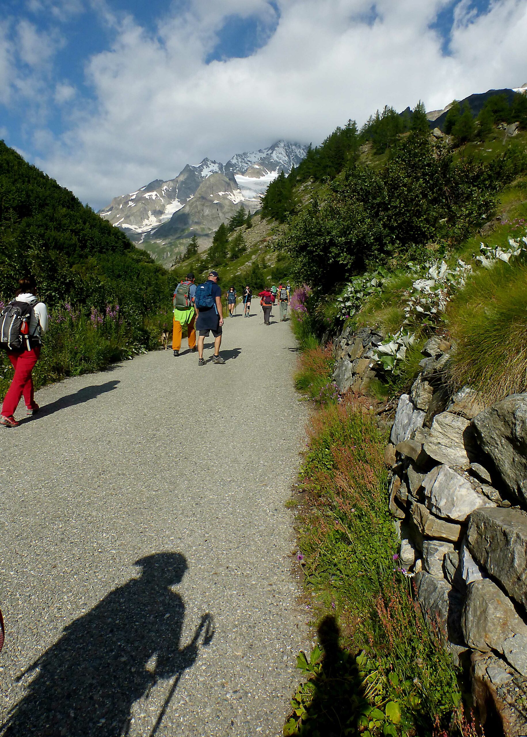 Infine rientro al rifugio su largo sentiero del tour di Mont Blanc da abbandonare, salendo verso sx in vista dell’Elisabetta.