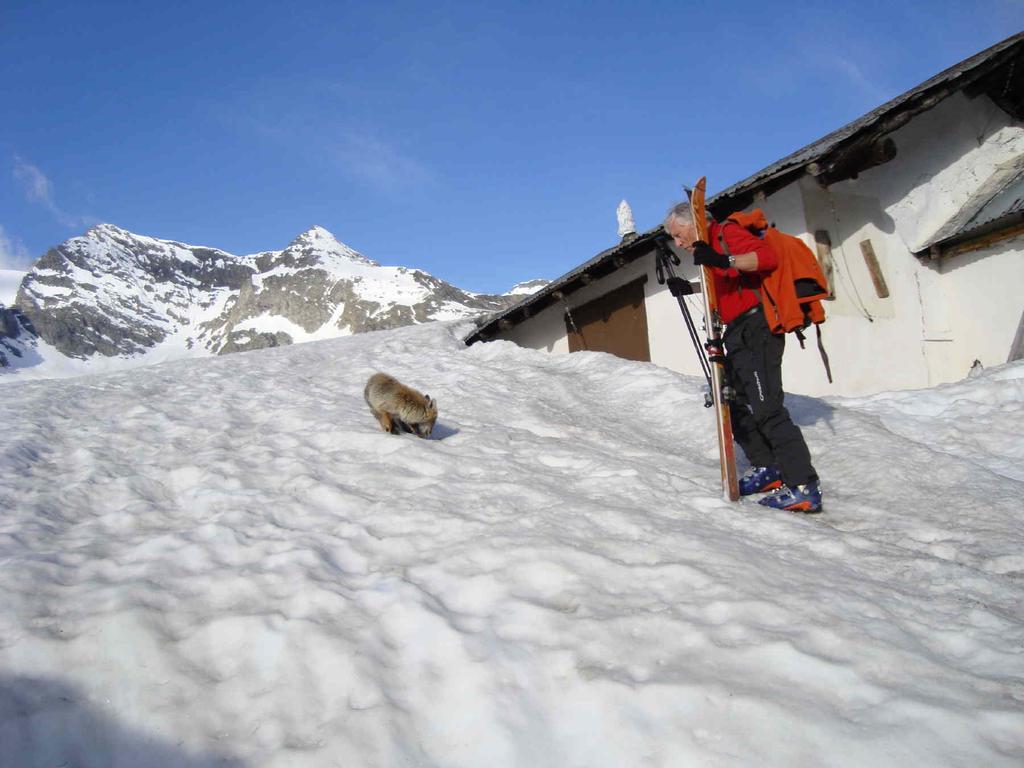 Salendo neve compatta . La discesa con neve polentosa ma sciabile