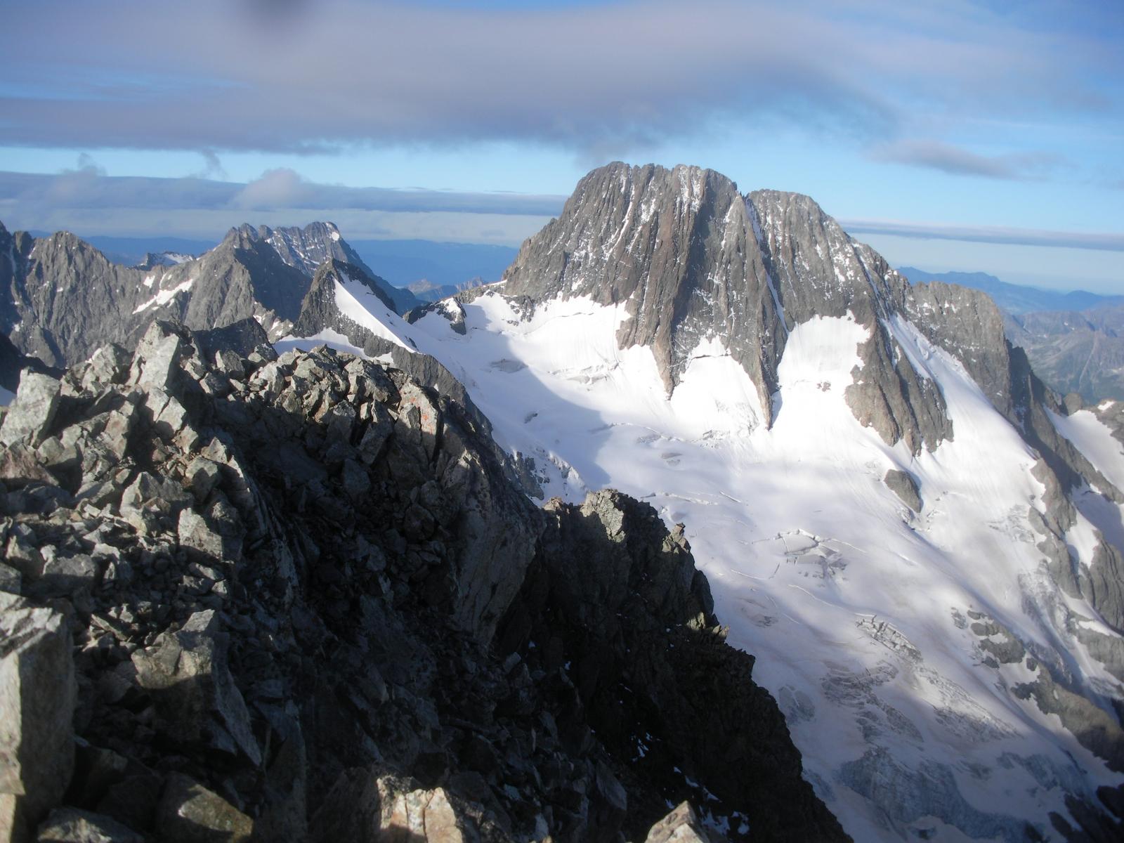 E a seguito di una notte all’addiaccio senza neanche poter disporre di un sacco da bivacco volutamente lasciato a casa..mi preparo a superare quest’ennesima prova dopo l’ancor fresca esperienza di ieri sempre in zona. Senza neanche un minuto di sonno a vagare l’intera notte nelle tenebre su e giu’ per pietraie al fine di non perdere calore, e avere ancora la voglia di smarronarmi una cresta della madonna in ambiente aspro e severo di quelli a cui sono da anni ormai abituato a frequentare, puo’ apparire come una cosa alquanto normale…di sicuro una cosa non da tutti. Alle difficolta’ di salire una cresta lunga ma al sole (ma con roccia fredda), slegato, no tempo per un po’ di riposo, vuoti impressionanti anche per chi’ abituato, non perdersi d’animo, consapevole del fatto che una lunga discesa non scevra di pericoli e’ li ancora tutta da fare..tranquilli del tutto difficilmente si riesce ad essere.