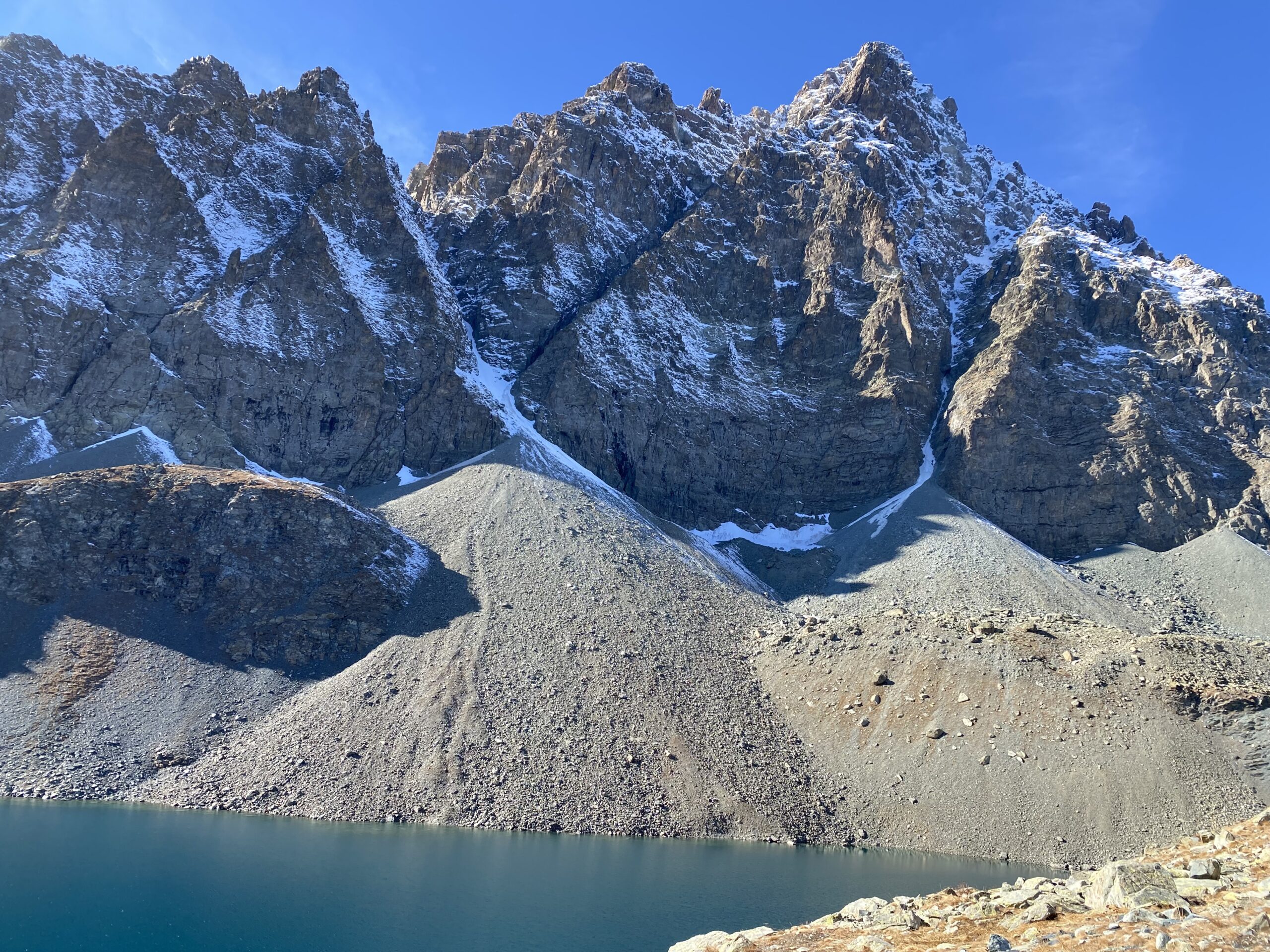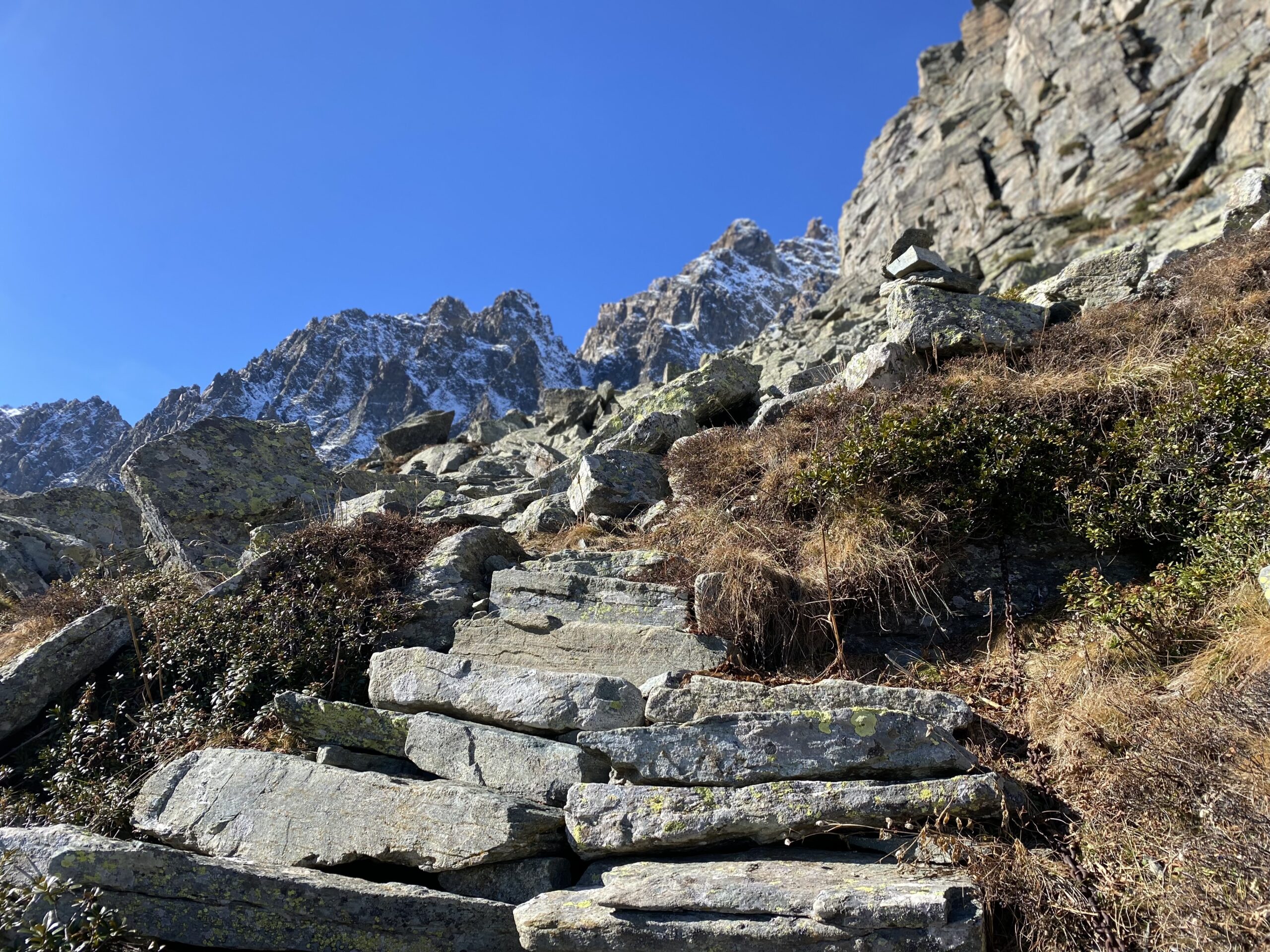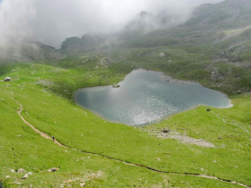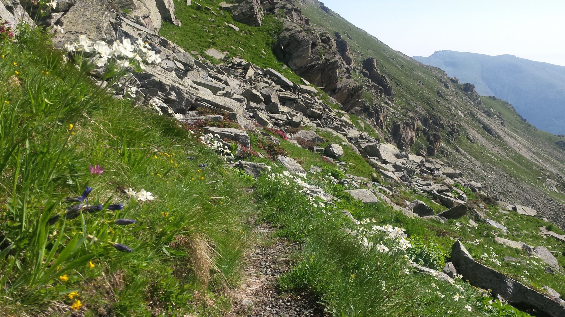 Passate le Tre Croci, ci si inoltra nella conca di Pra Fiorito con i due laghetti e si arriva ai piedi delle Balze di Cesare. Salita erta ma ben segnata fino a la lago di Costagrande e al rifugio Q.Sella.