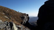 La si segue con possibili scorciatoie fino al colle Arpiol; si risale verso SW la costa del Vallone fino a un grosso ometto di pietre e cemento. 200 metri dopo parte verso dx un sentiero che taglia in leggera salita la parte destra della conca delle Sbarrine.