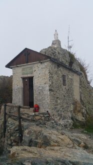 il più frequentato che sale per il bosco nel versante ovest-nord-ovest, quindi d’inverno è facile trovare neve. Nella parte alta qualche facile roccetta e poi si travresa verso destra, passando sul versante sud, fino ad un colletto dal quale appare la cima. Ci si abbassa di qualche metro a sud, raggiungendo la base della scalinata che porta alla cappella in cima. (segnavia 575 bianco/rosso)