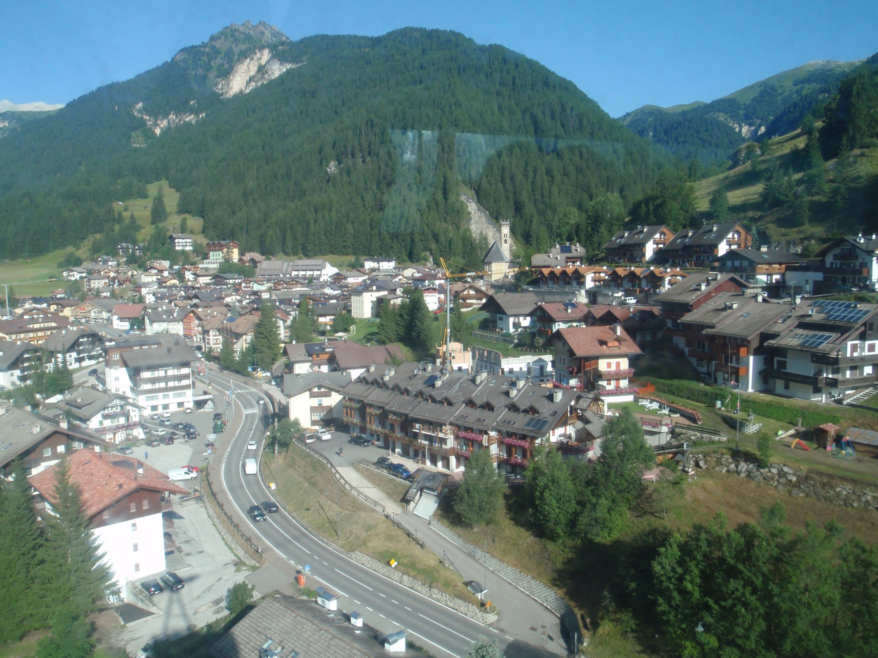 Giunti a Canazei raggiungere le sponde dell’Avisio e percorrere le belle stradine ciclabili sterrate (piste di fondo) che portano a Campitello, da cui prenderemo la funivia del Col Rodella.