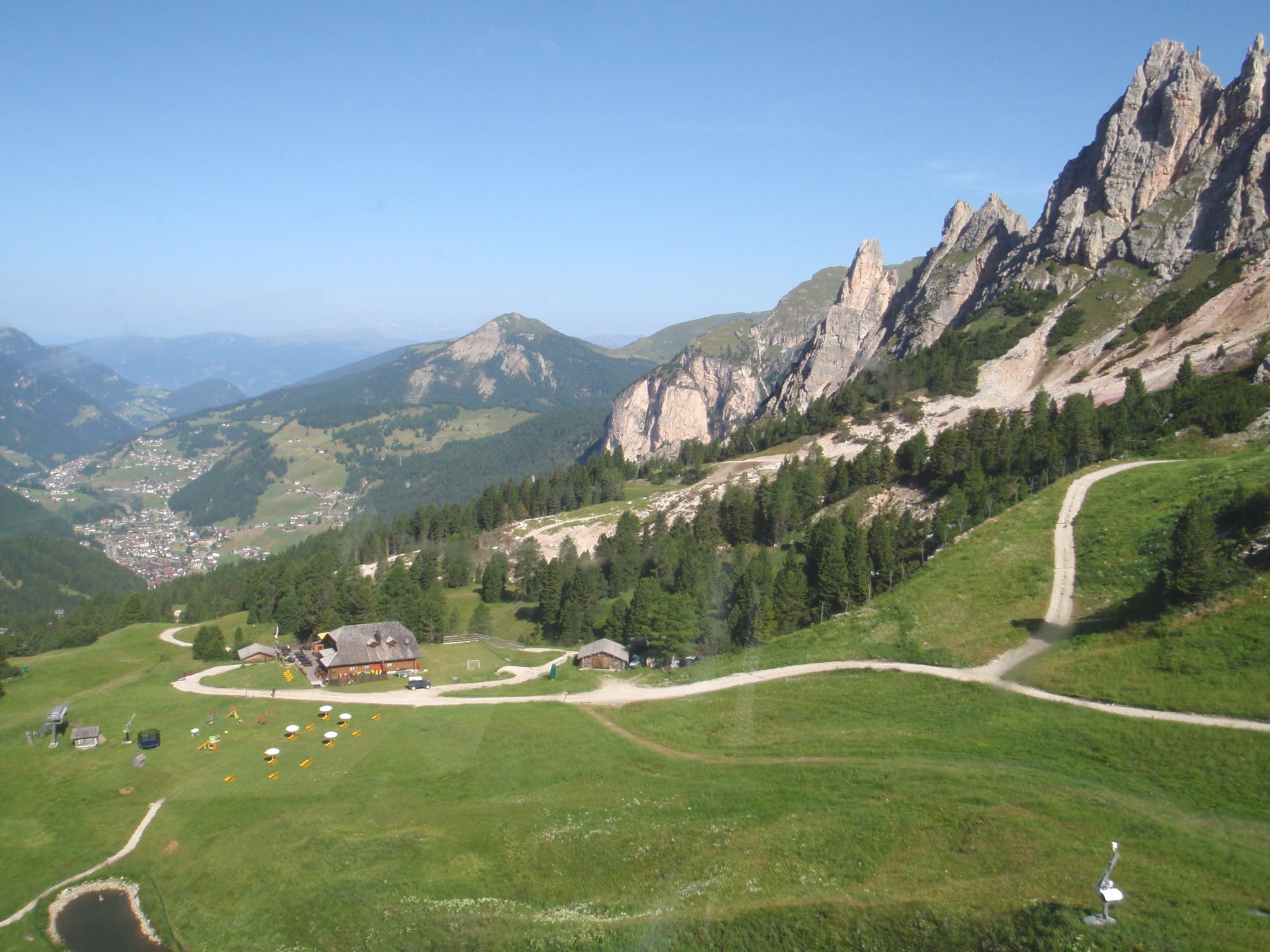1) tutta discesa fino a Selva, con il sentiero 657 (divertente) fino a Pian de Gralba e poi ancora sentiero a fianco della strada lungo il Rio Gardena fino a Selva.