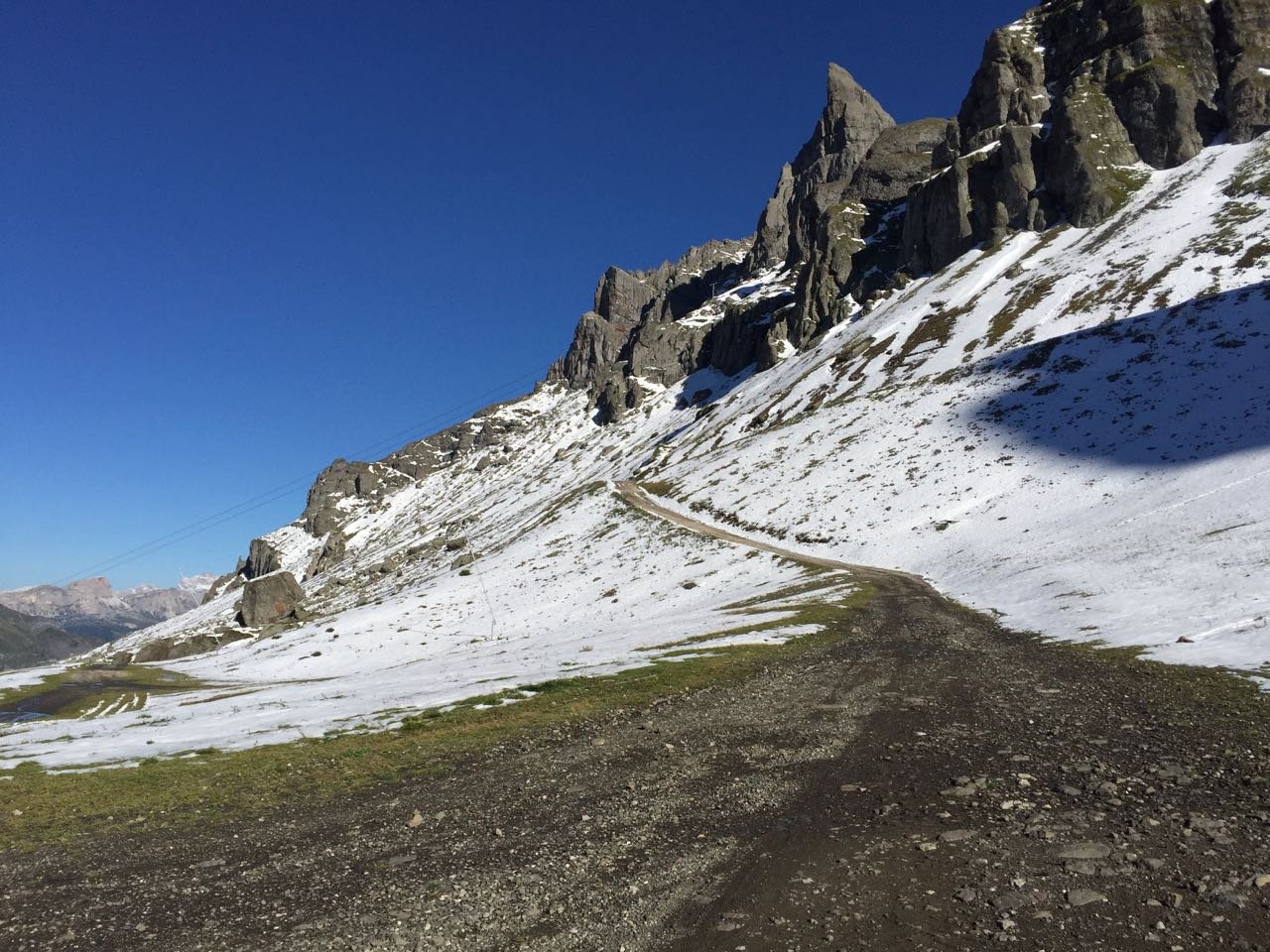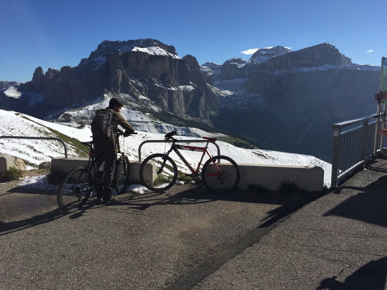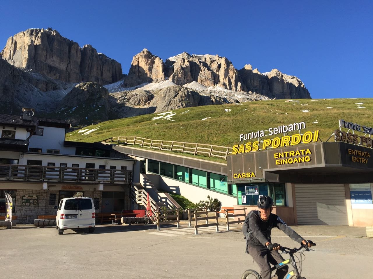 Risalire su asfalto e al bivio girare a sin per il passo Gardena. La salita è molto pedalabile e panoramica e consente quindi un bel “riscaldamento”; prestare attenzione nei periodi di alta stagione al traffico (questo è l’unico tratto di tutto il giro da condividere con auto e moto, tuttavia se affrontato al mattino presto è ancora accettabile).