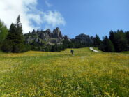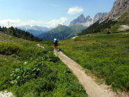 Giunti in quota scendere brevemente lungo una pista e su sentiero raggiungere la seggiovia Braia Fraida; in questo tratto il panorama è bellissimo e si viaggia sopra prati verdissimi con animali al pascolo. Dalla staz. sup della seggiovia seguire una stradina bianca percorsa anche da pedoni, che con saliscendi in quota e rampette ripide porta in breve al Rif./Rist. Pralongià.