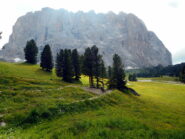 Da Selva salire al Passo Gardena con la telecabina Dantercepies o in alternativa con la sterrata della pista da sci sottostante; nell’estate del 2013 la funivia era in rifacimento e la pista chiusa, per cui abbiamo optato per un’alternativa, forse ancora più bella e panoramica: salire con la Funivia Ciampinoi e iniziare quindi il giro in discesa su un bel trail fino al bivio per il Rif. Comici (steccato con cancello in legno per le mucche). Svoltare a sin. e ancora in discesa su sentiero e poi su sterrata scendere al Pian de Gralba.