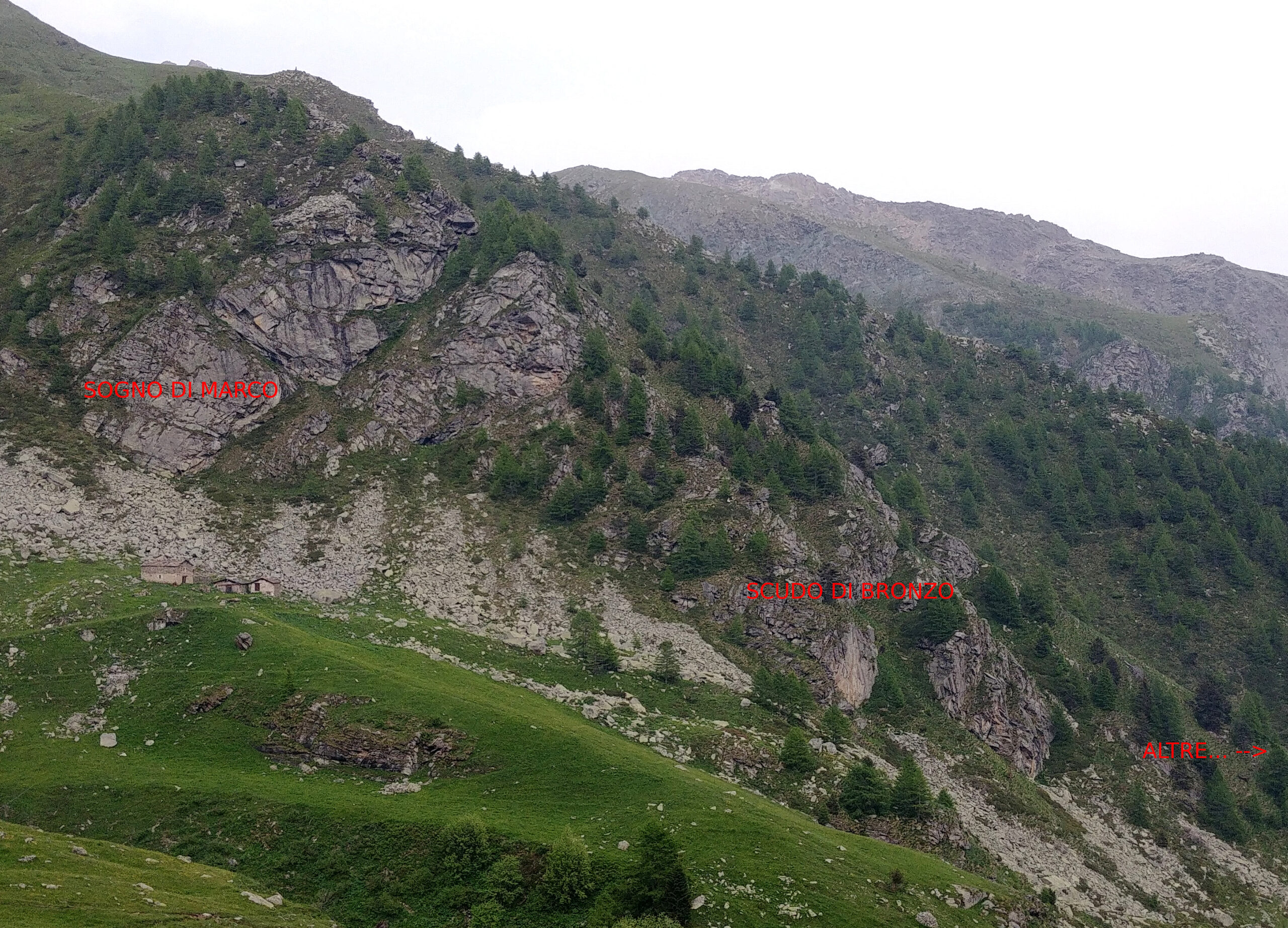 Lasciata l’auto al Rifugio, si attraversa la conca in direzione est sino a raggiungere le tre falesie: il Sogno di Marco e lo Scudo di Bronzo 10', la Parete dei Pionieri 20' dal rifugio.