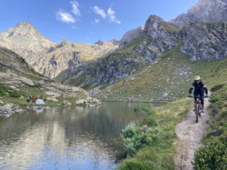 Il giro è di grande impegno fisico, sarà anche per il caldo, ma io al colle Selliere ci sono arrivato veramente demolito, le discese tutte di gran soddisfazione, varie, le uniche parti non ciclabili sono appena sotto il colle di Selliere (circa 50 m D-) e un pezzo del GTA dopo il rifugio Jervis che è terribilmente compromesso rispetto all’ultima mia discesa che risale a circa 10 anni fa, a tal proposito consiglio di fare solo il taglio subito dopo il jervis (bella mulattiera lastricata ciclabile S3) e poi seguire la poderale fino alla macchina.