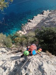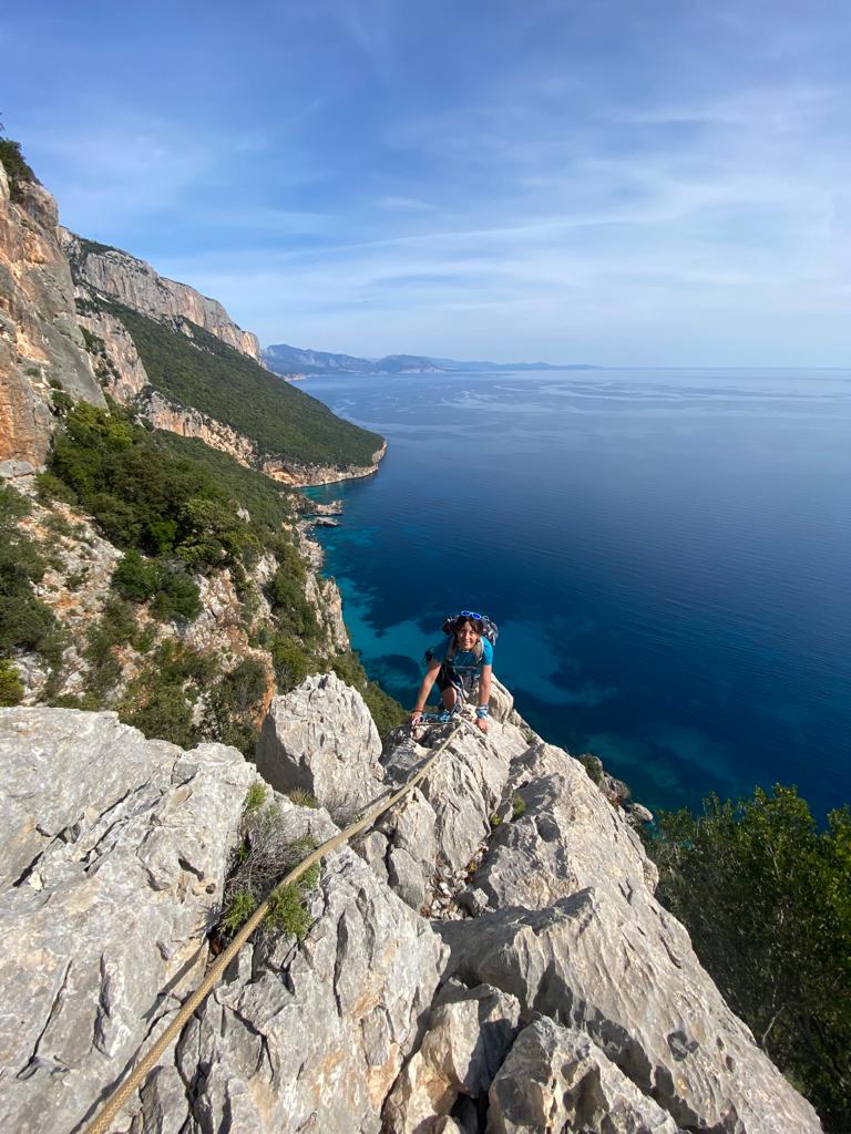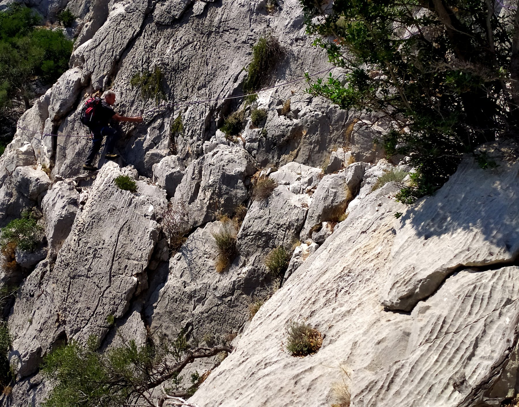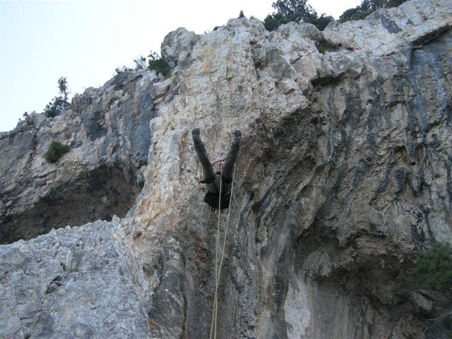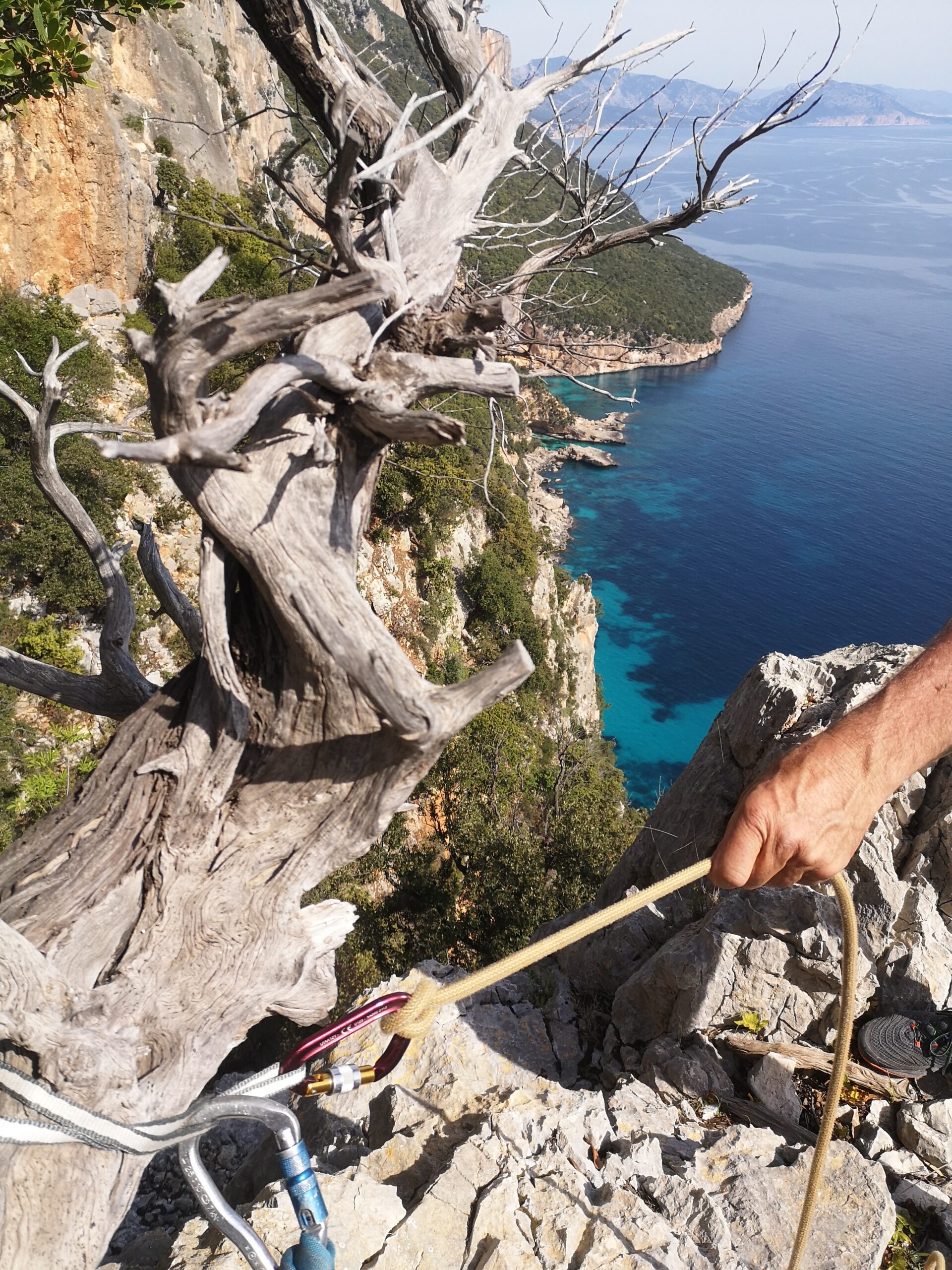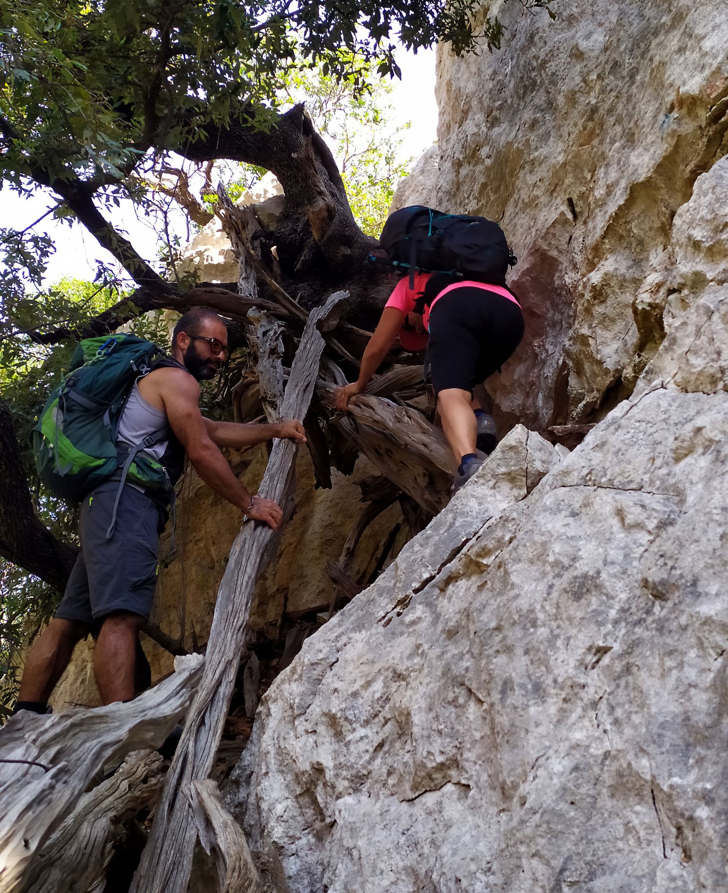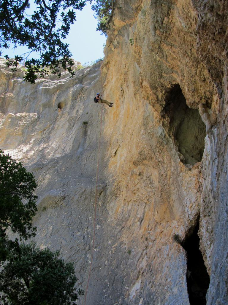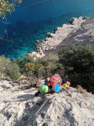 - 4^ tappa: da Cala Goloritzè a Ololbissi, sentiero sconnesso, con passaggi alpinistici, brevi arrampicate di IV grado e cinque calate in corda doppia (15-23-15-15-15). E’ la tappa più lunga. Comprese le soste il tempo di percorrenza è stato di 11 ore;