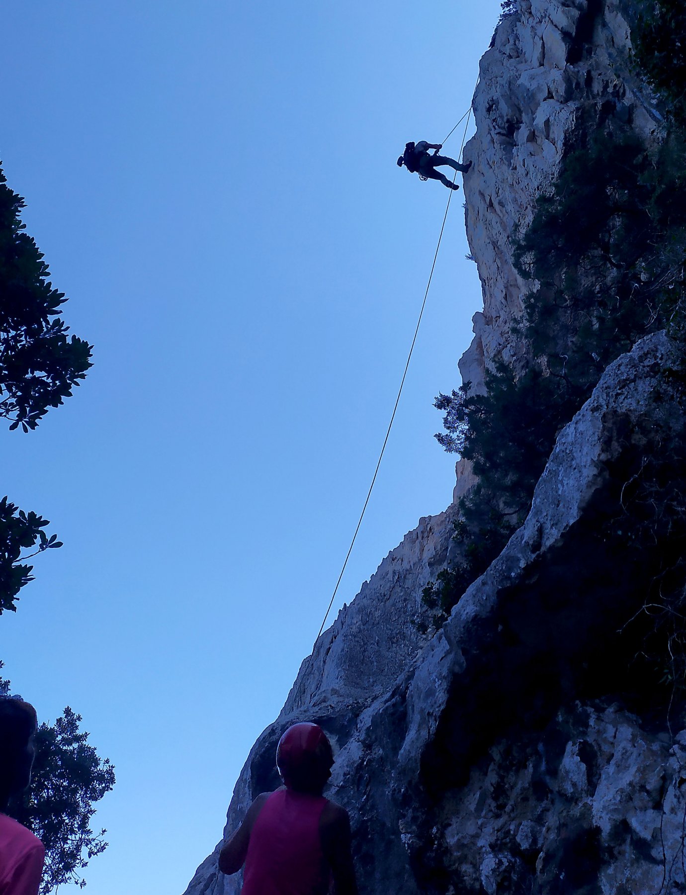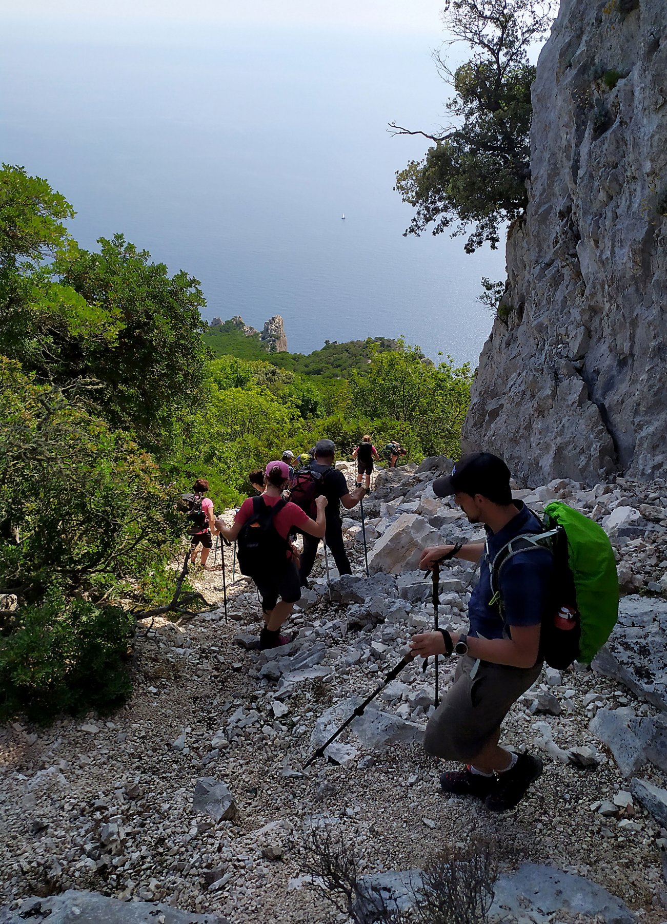 - 5^ tappa: da Ololbissi a Cala Sisine con difficolta alpinistiche, quattro calate in corda doppia (22-50-45-23), due arrampicate di III e IV grado, un traverso e bagno nella spiaggia di Cala Sisine;