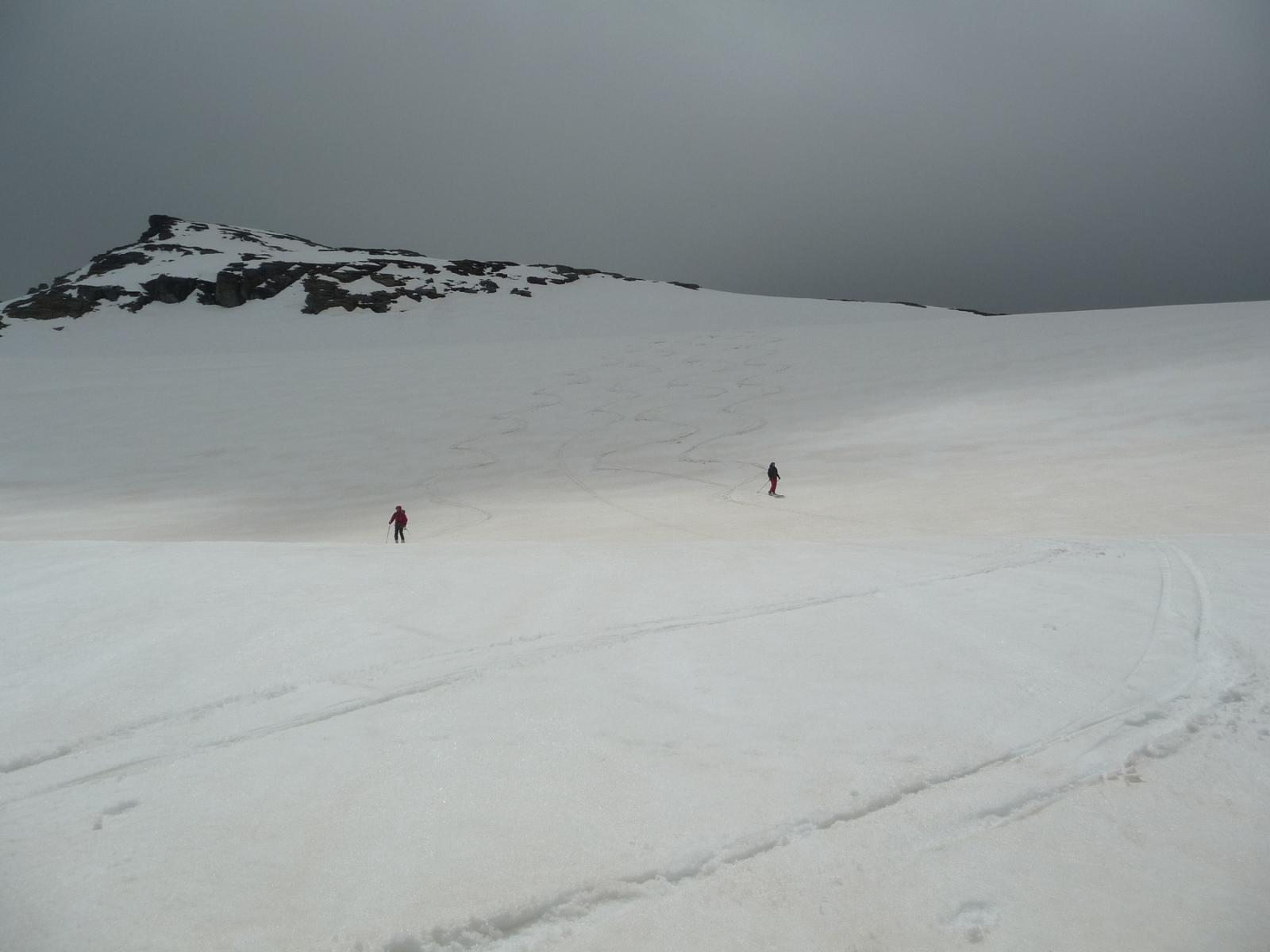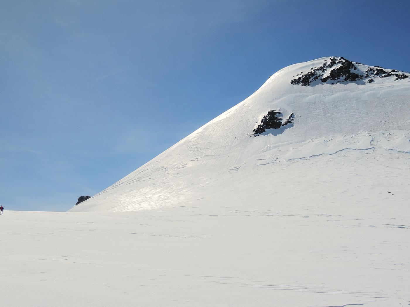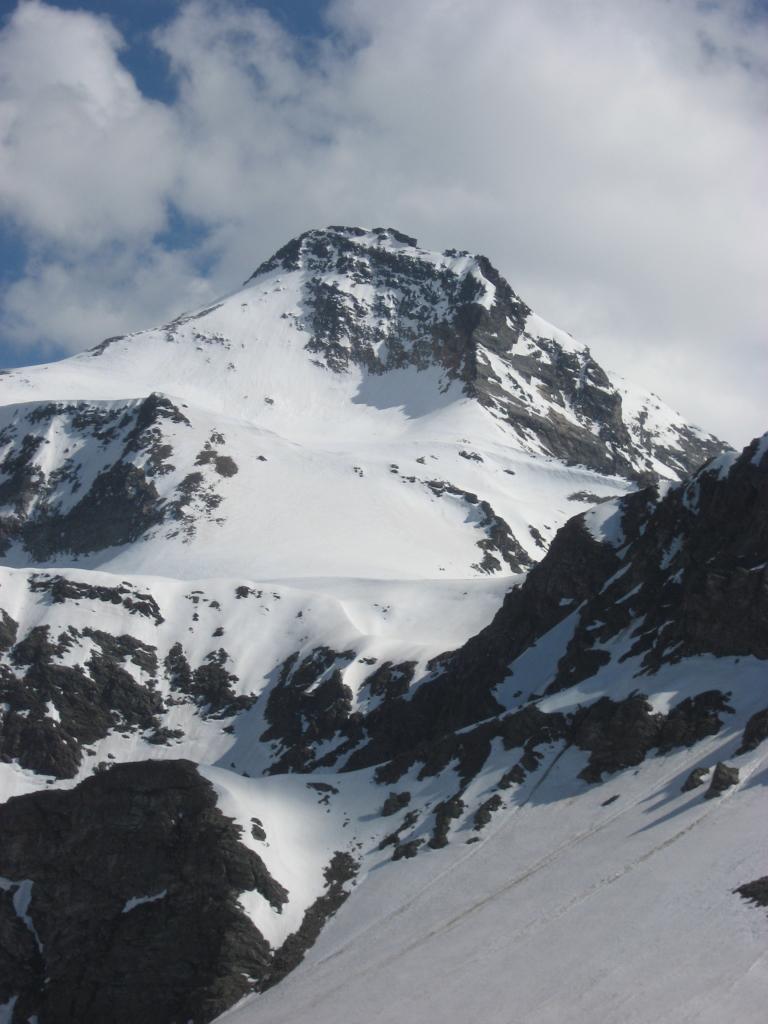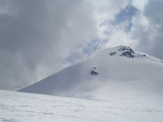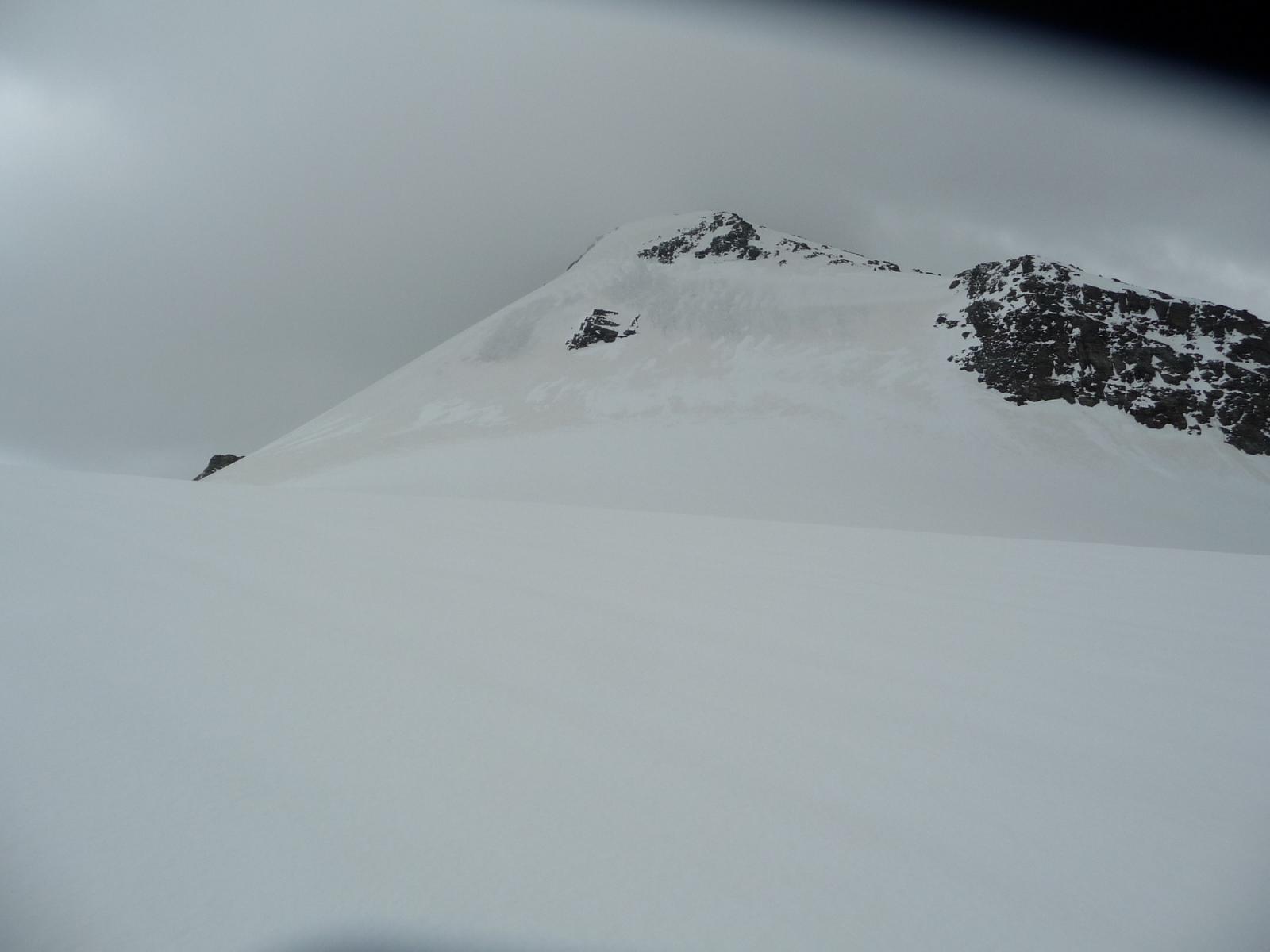 Aggirare la vetta verso est e risalire il pendio fin dove si può, occhio al ghiaccio!
