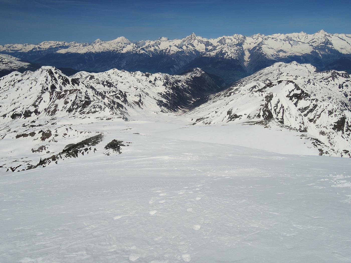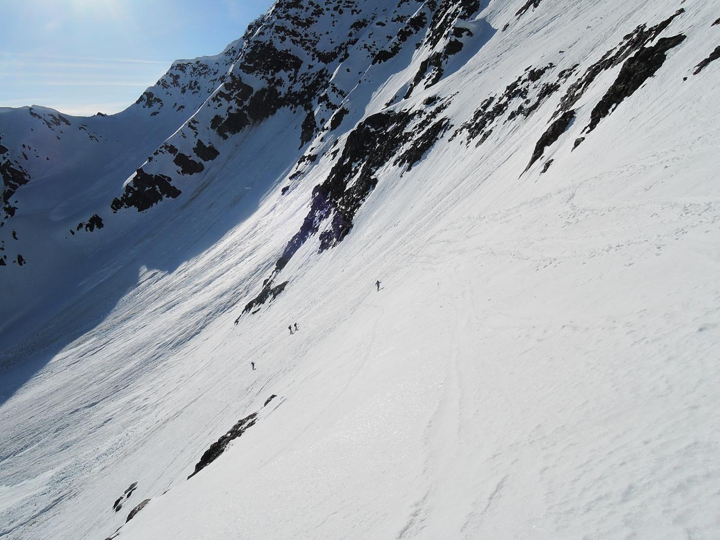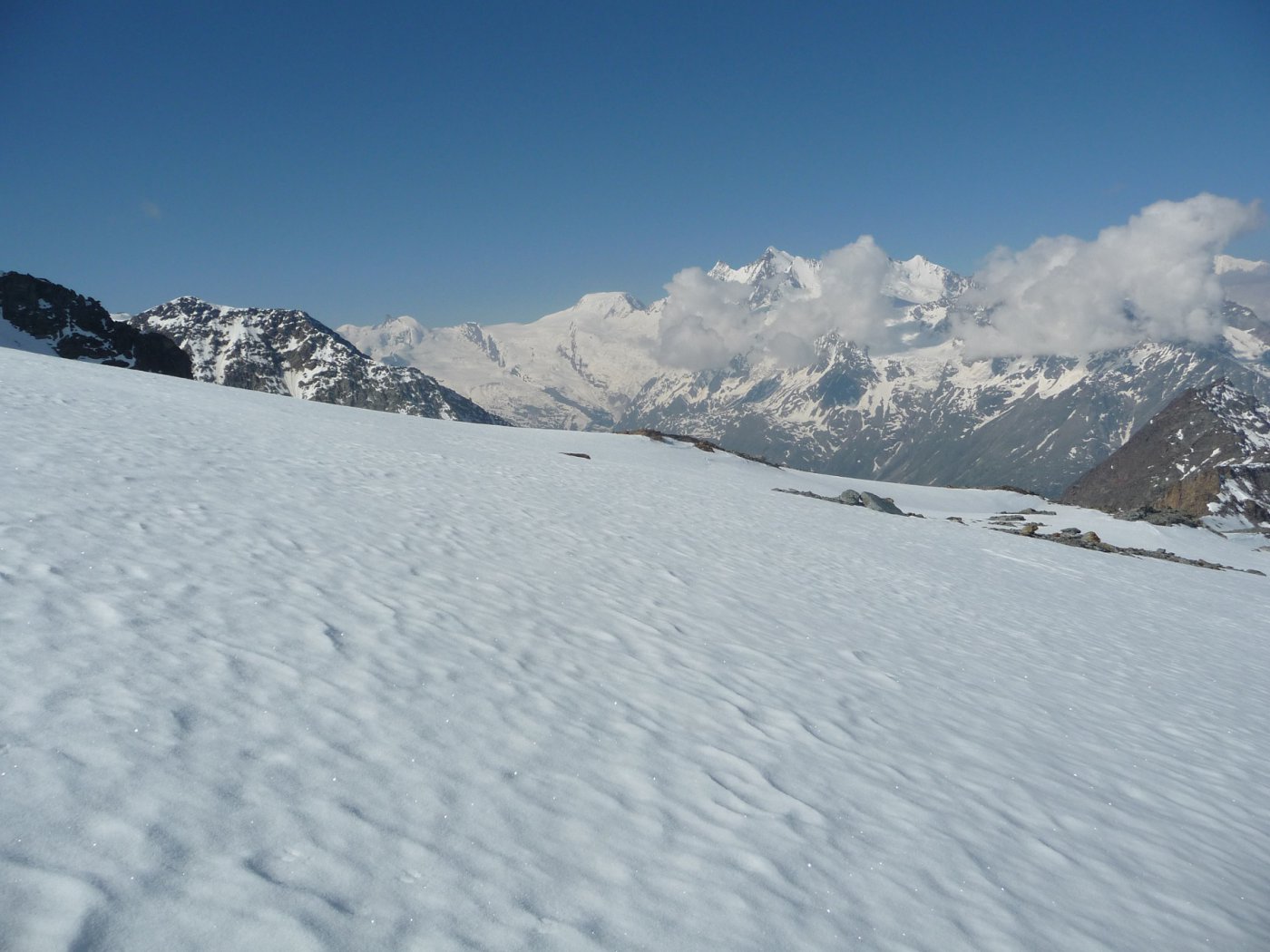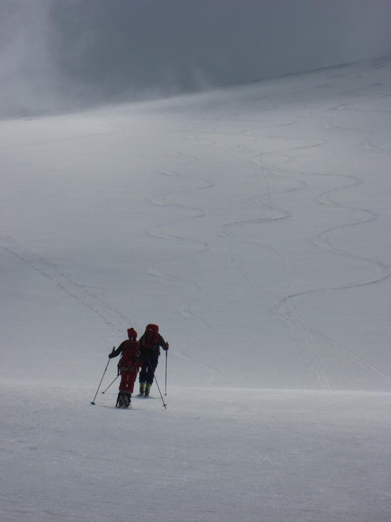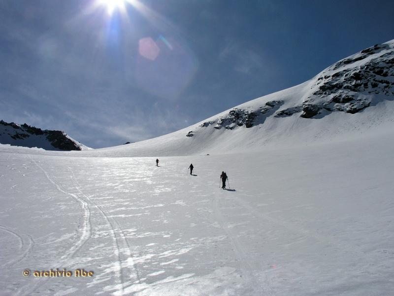 Aggirare la vetta verso est e risalire il pendio fin dove si può, occhio al ghiaccio!