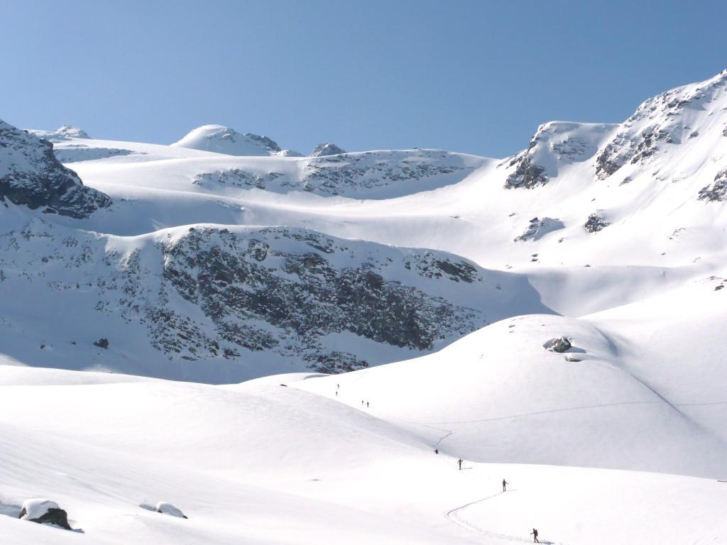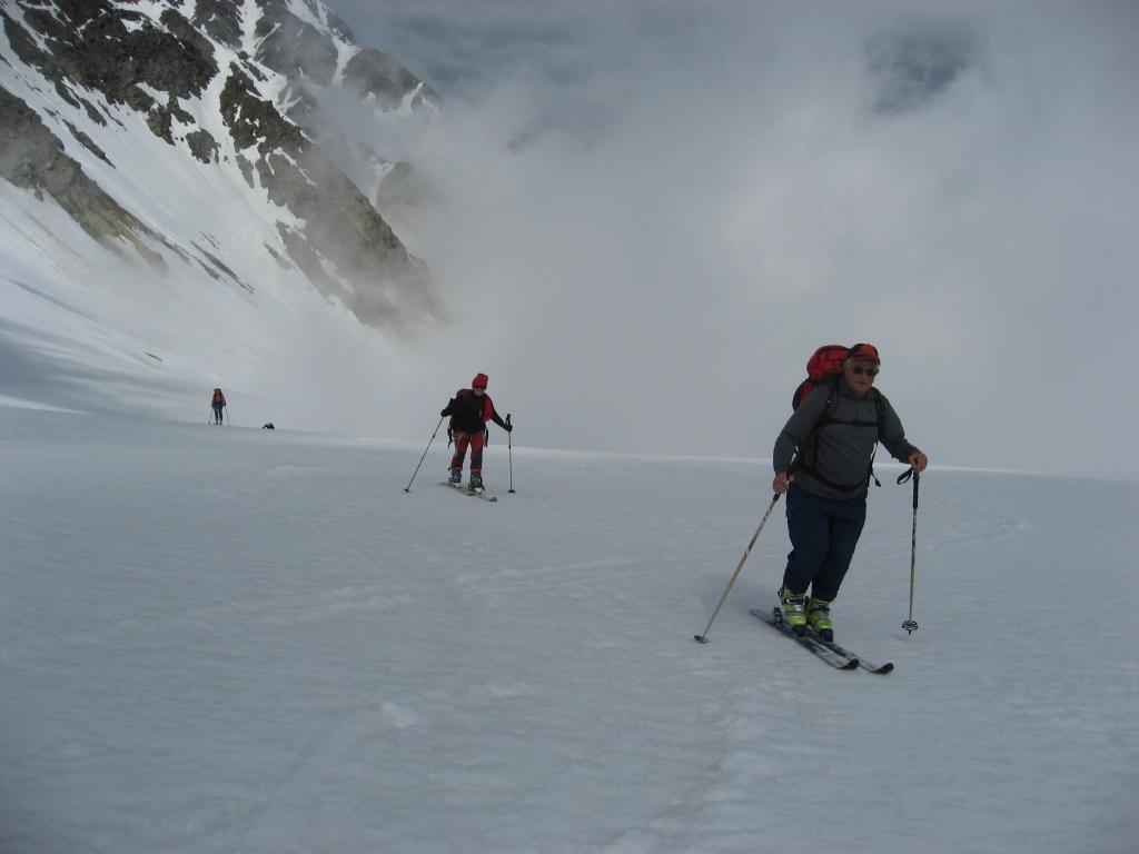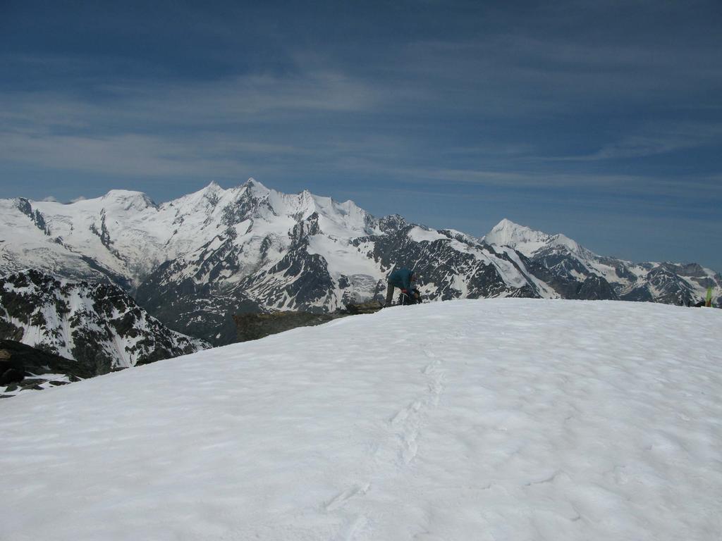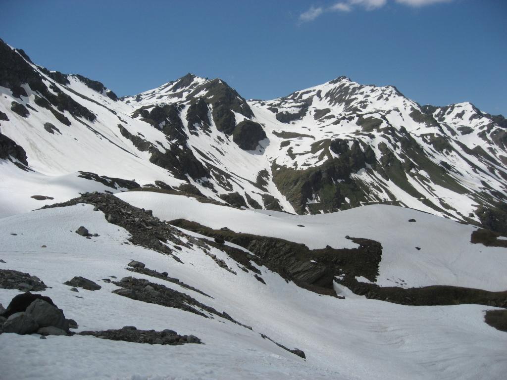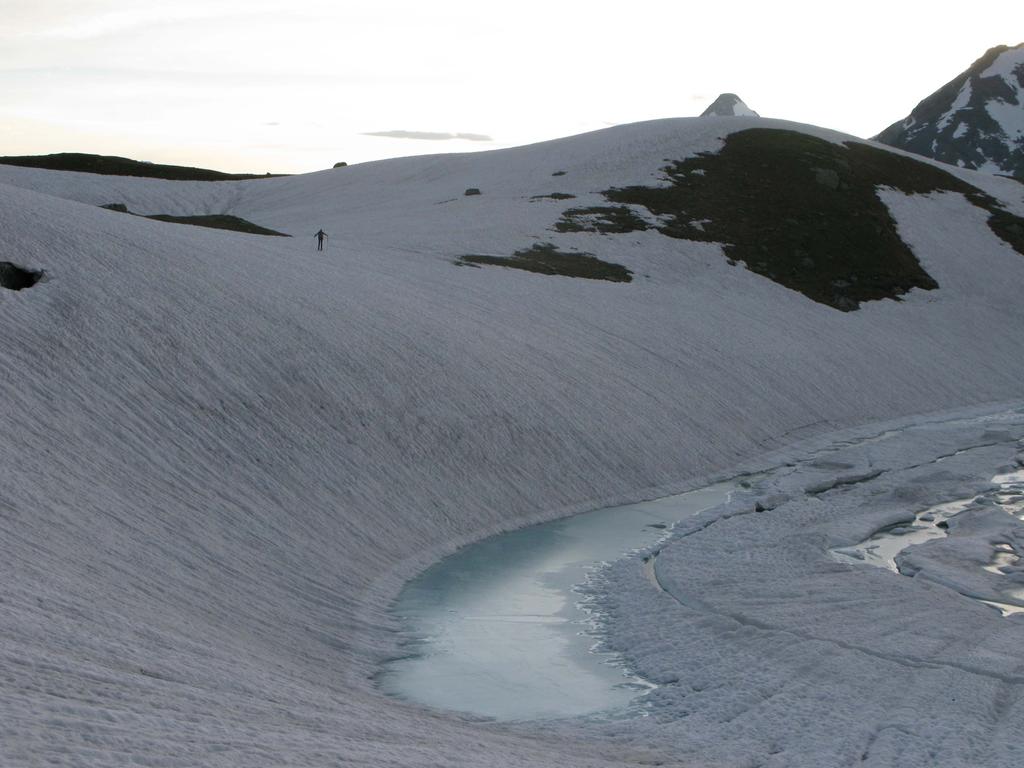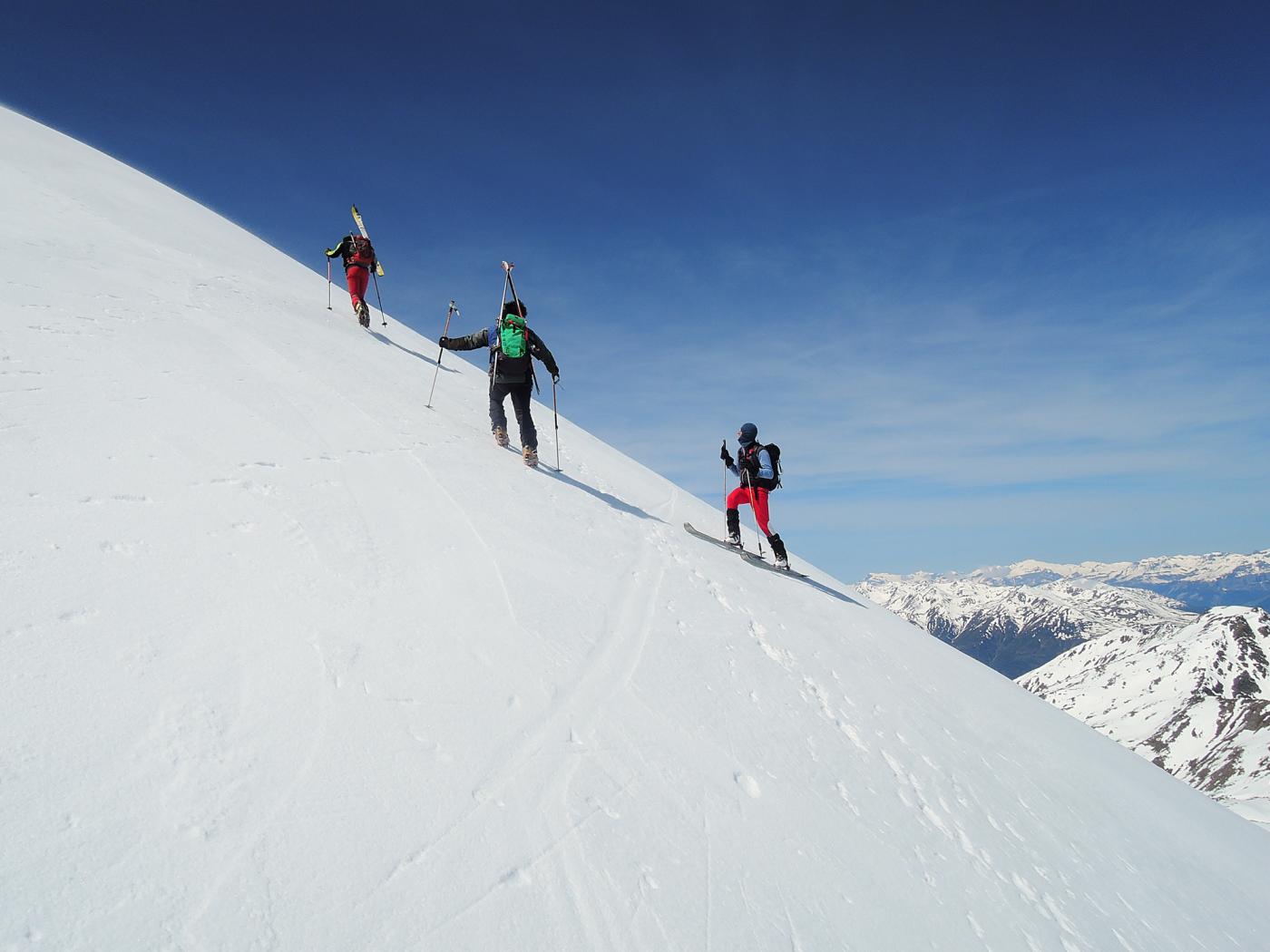 Aggirare la vetta verso est e risalire il pendio fin dove si può, occhio al ghiaccio!