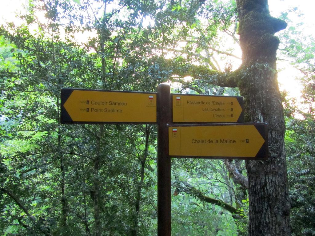 Sceso nella gola e superato il ponte Estellié, raggiungo l’incrocio tra il sentiero Martel e la salita verso lo Chalet Le Maline.