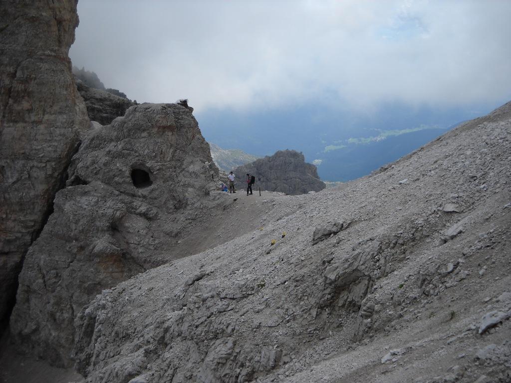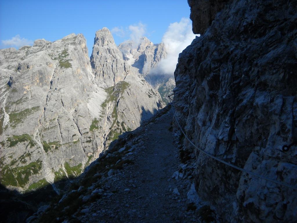 Altrimenti si prosegue dritto su scale e tratti con sola fune fino ad un centinaio di metri prima del Passo della Sentinella 2717.