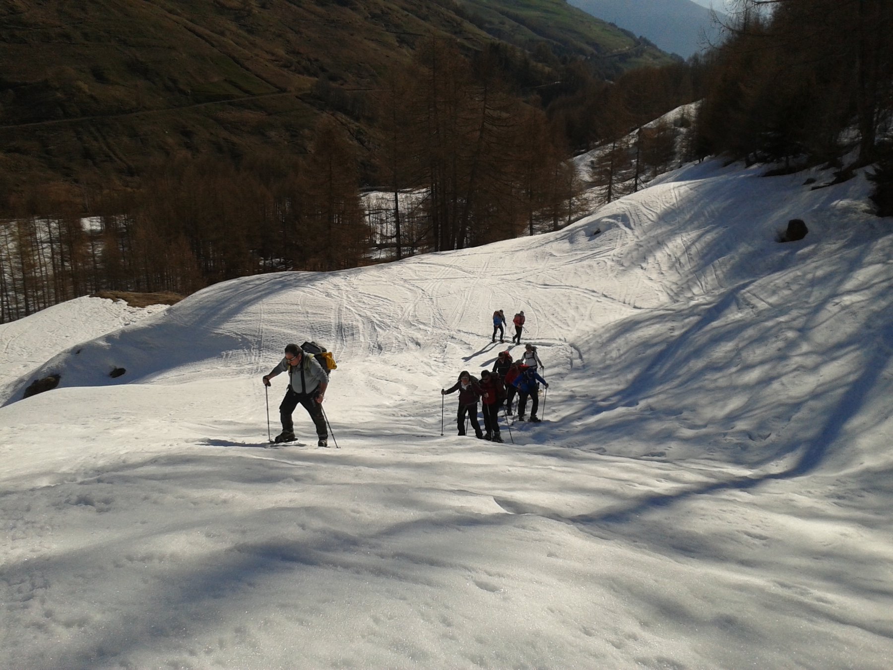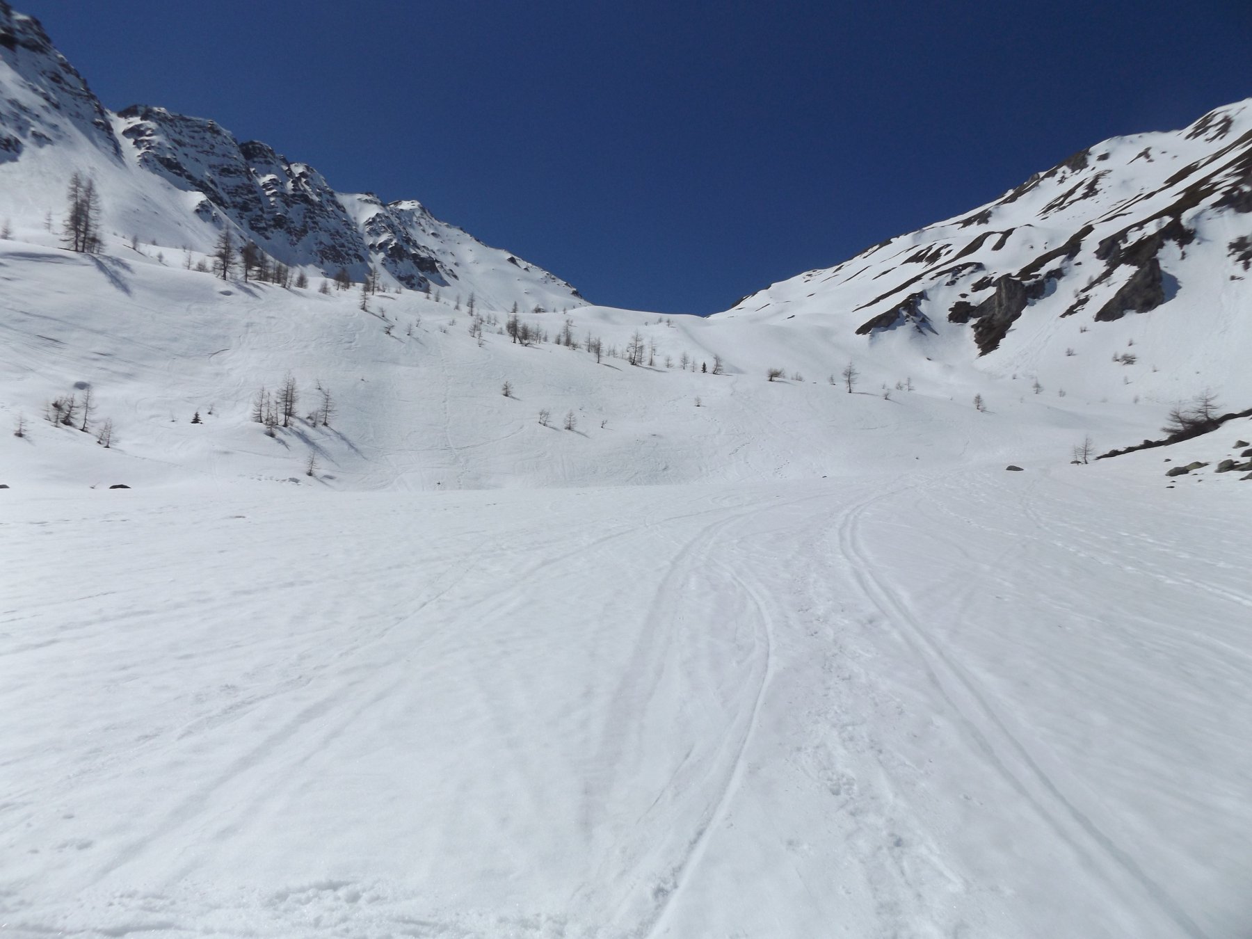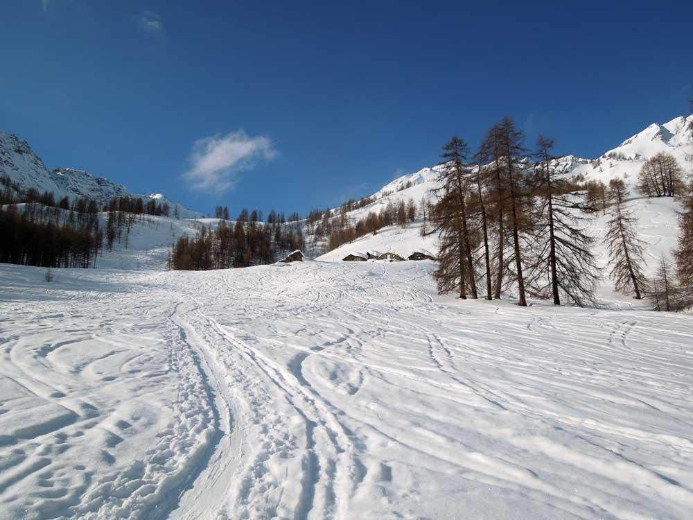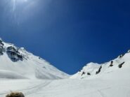 Raggiunti gli alpeggi e superato il bosco si raggiunge un’ampia conca, da cui è ben visibile il colle, che si raggiunge con percorso evidente, tenendosi al centro della valle.