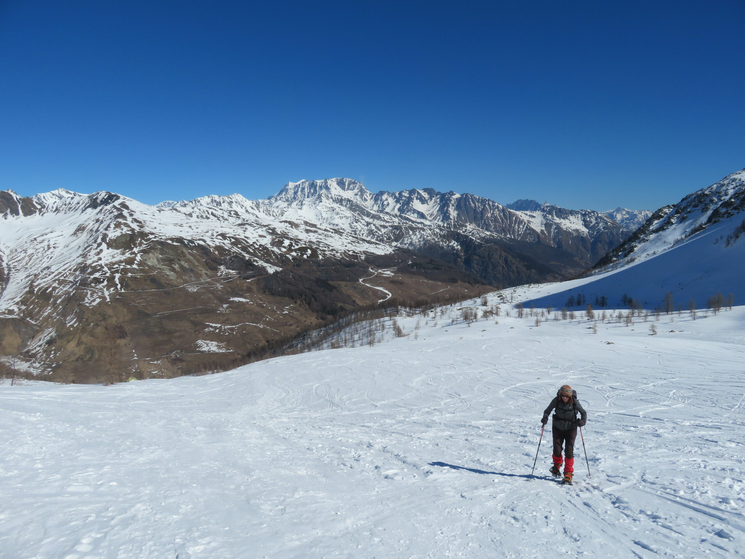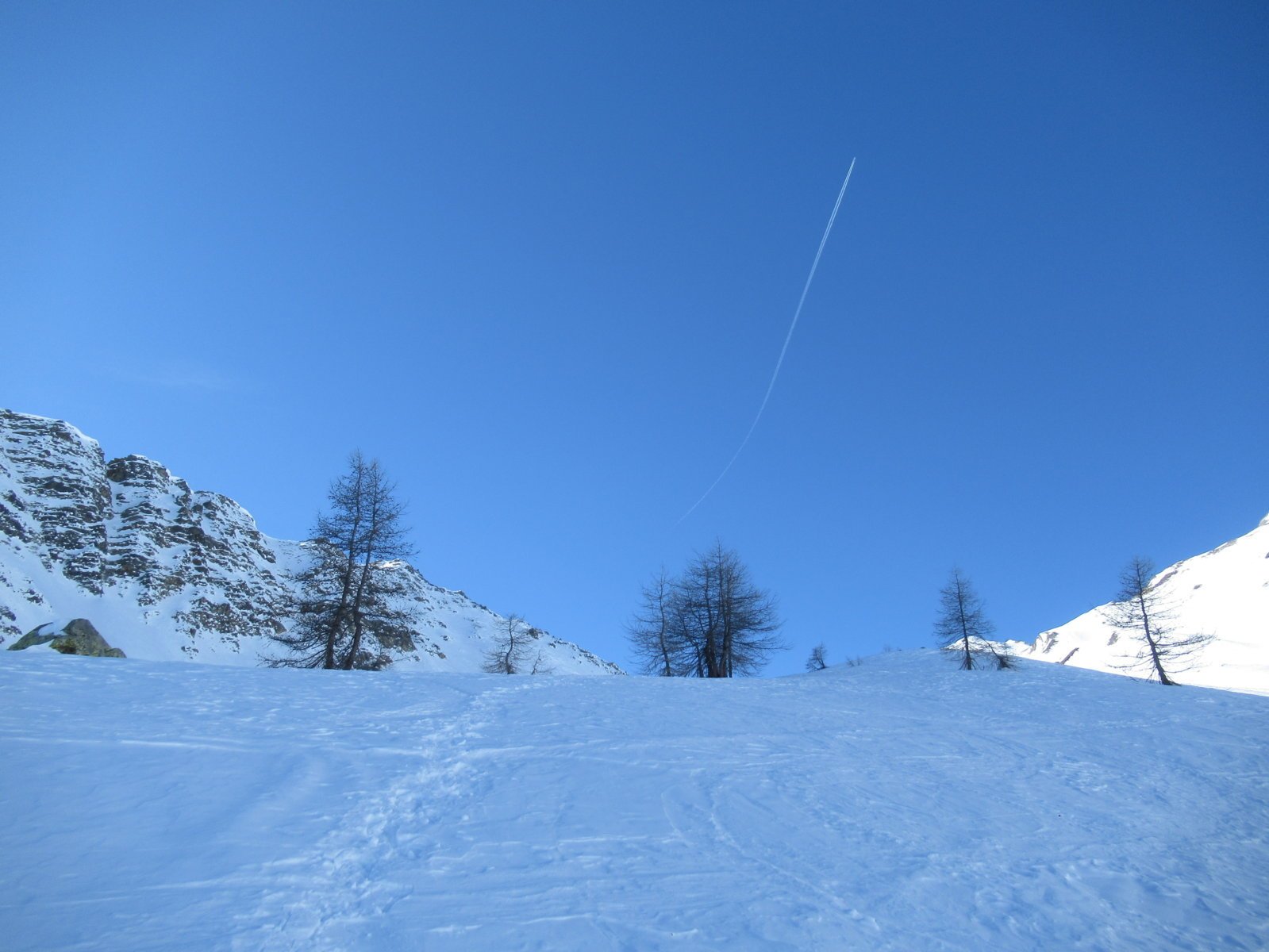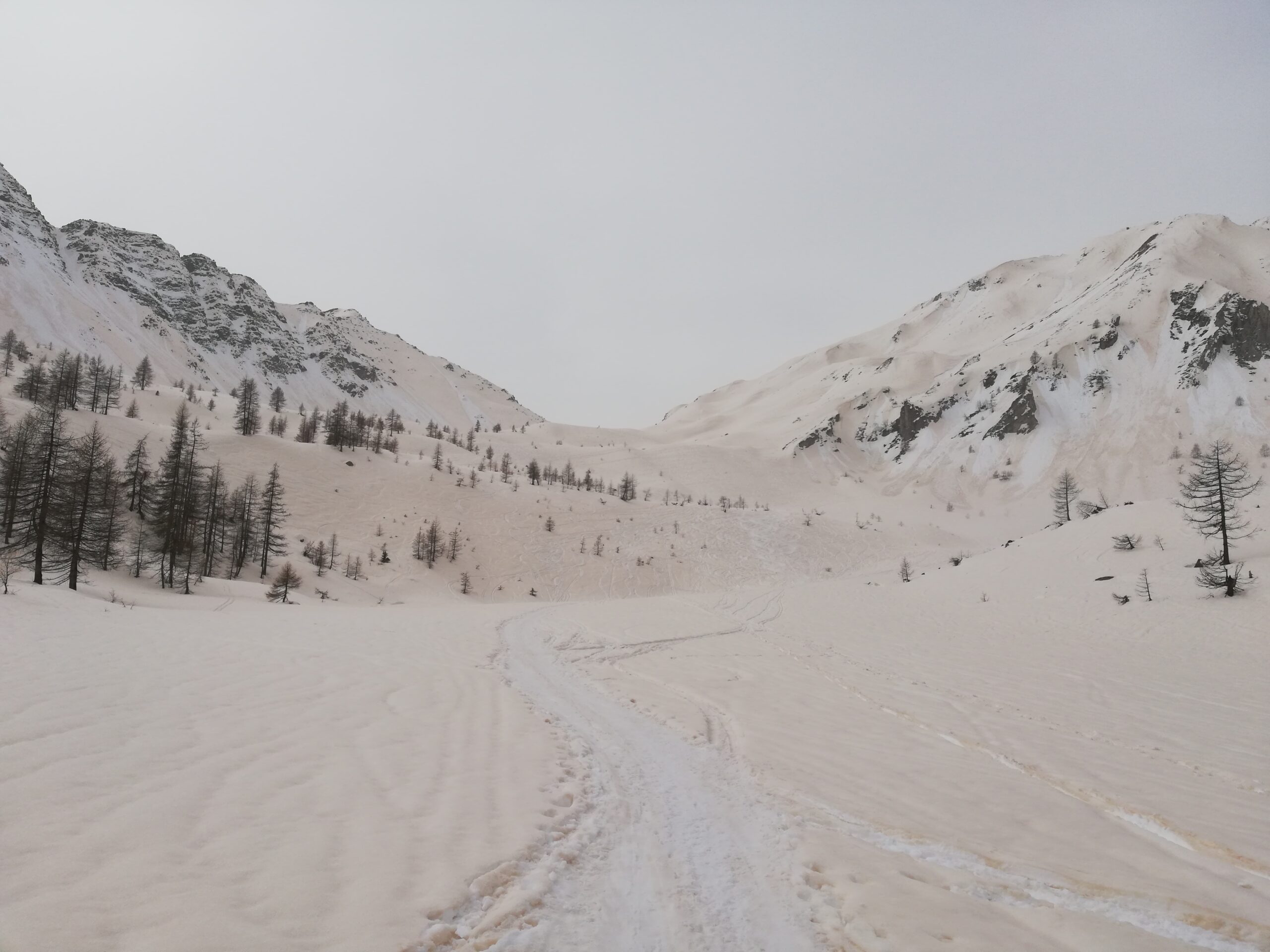 Raggiunti gli alpeggi e superato il bosco si raggiunge un’ampia conca, da cui è ben visibile il colle, che si raggiunge con percorso evidente, tenendosi al centro della valle.
