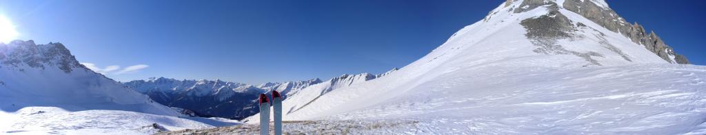 Bella traccia fino al colle,temperatura già alta alla partenza(+4) ma la neve ha tenuto grazie all’esposizione prevalente a Nord.