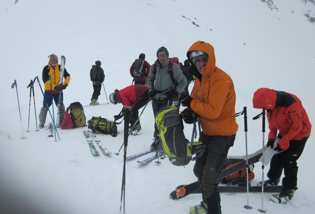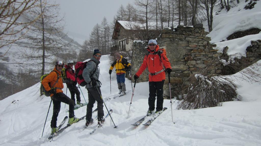 Non conoscendo quanta neve era caduta nei giorni scorsi avevamo in paniere diverse possibilità. Arrivati nel vallone del Gran San Bernardo abbiamo visto che comunque sotto i 1600 – 1700 metri la neve era scarsa e discontinua. Il dubbio era fra la zona del Flassin e quella di Crevacol. Abbiamo deciso infine per il col Serena. Alla partenza cominciava a nevischiare con visibilità abbastanza scarsa. Arrivati in punta la neve e il vento gelido ci ha indotti a scendere nel minor tempo possibile. Date le condizioni meteo e il tipo di neve che faceva zoccolo sotto gli sci non è stata una discesa bellissima, ma per oggi direi che è il meno peggio. Saluto anch’io gli “evergreen” con i quali ho effettuato la gita i cui nomi sono già stati elencati da brunocamol