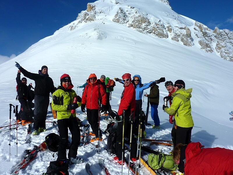 Bella giornata, assenza di vento, ottimo gruppo, neve stupenda: 20 cm di zucchero a velo sin dalla partenza fino a circa metà gita poi in alto soltanto più 10cm di polvere per una sciatona su pendii intonsi! Pochissima gente in giro.