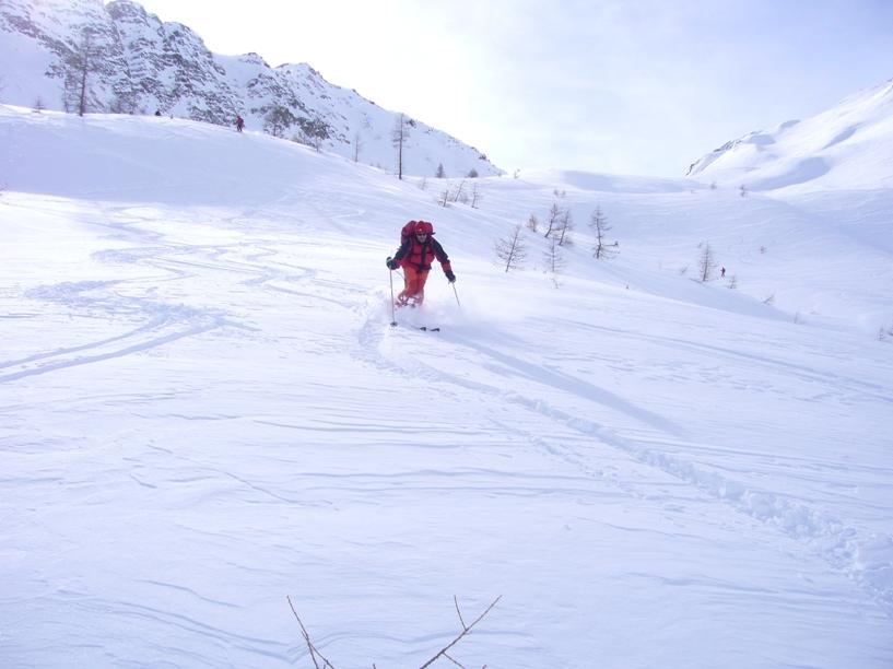 Il freddo e il vento si sono fatti sentire. Neve abbondante su tutto il percorso. La prima parte di discesa si è fatta su crosta portante, poi farina fino in fondo. Buone gite.