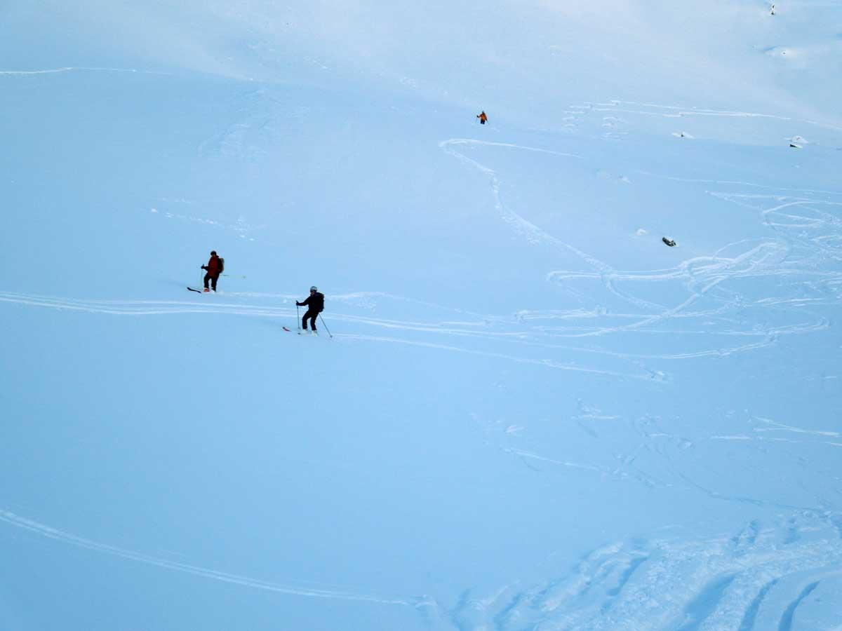 Molti skialp in giro alcuni dei quali diretti alla Costa Serena ed altri che hanno tracciato il canale verso la Costa Corleans. Un saluto a tutti, anche ad albertomuzio e socio con i quali, senza saperlo, abbiamo condiviso parte della gita. Gita ripetuta volentieri alla ricerca di uno dei pochi posti con neve continua e decente; le tre stelle sono un po’ generose…..ma siamo a Natale.