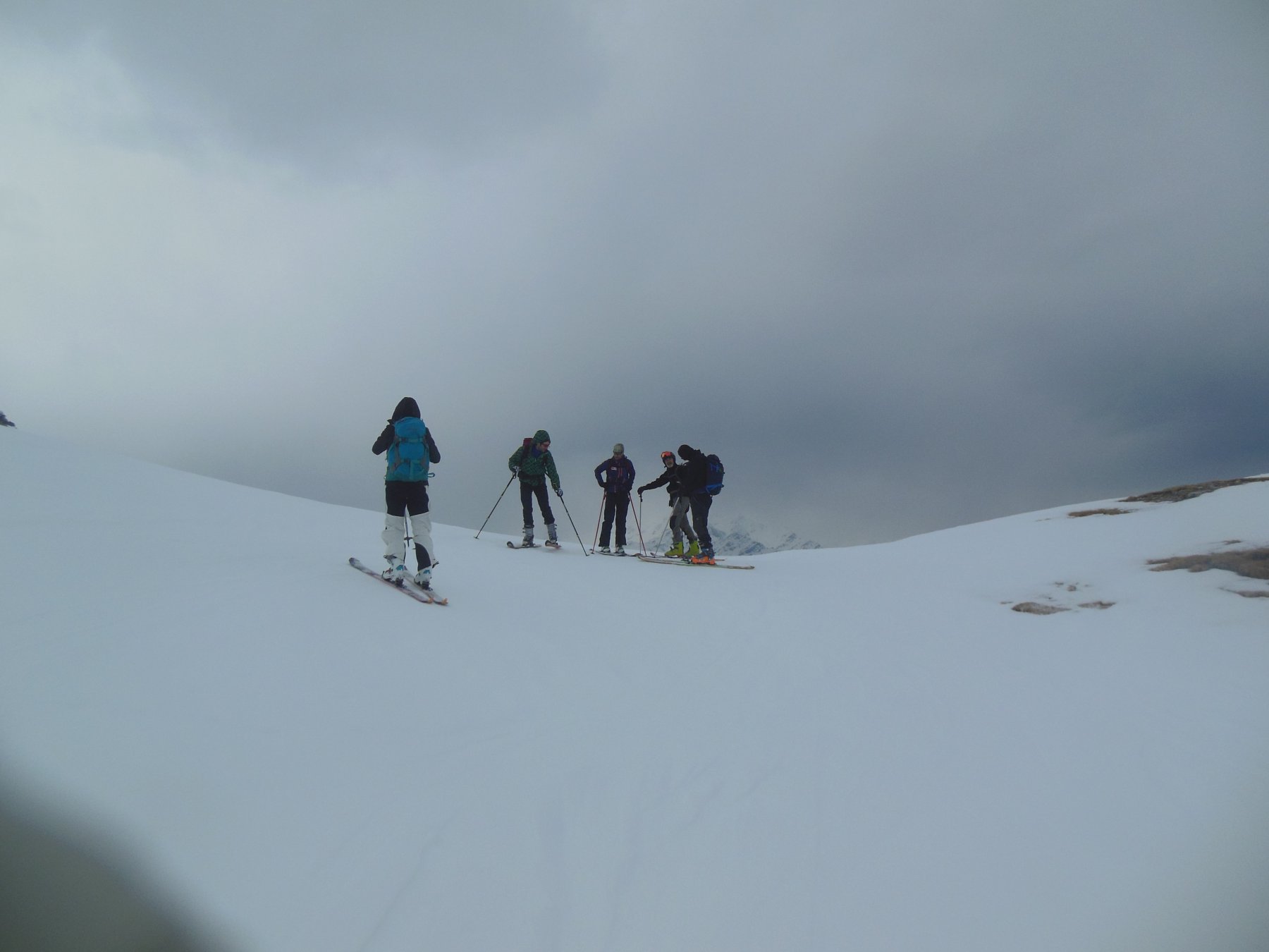 Si calzano gli sci appena dopo l’enorme valanga scesa fino al pianoro iniziale. Giornata piuttosto calda e nuvolosa, che ha creato una condizione di crosta non portante difficile da interpretare. Nella parte bassa neve umida sciabile.