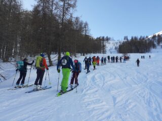 Terza uscita stagionale per il gruppo G.A.S.A.T.I. del CAI Chivasso con 35 partecipanti tutti sul Col Serena. Condizioni di innevamento buone su tutto l’itinerario oggi frequentatissimo. Giornata abbastanza fredda con qualche raffica di vento e le prime avvisaglie della perturbazione in arrivo. Discesa divertente su manto nevoso battuto come una pista sai ripetuti passaggi di tanti scialpinisti. Una giornata super con tanti amici conclusasi, finalmente, in modo tradizionale!