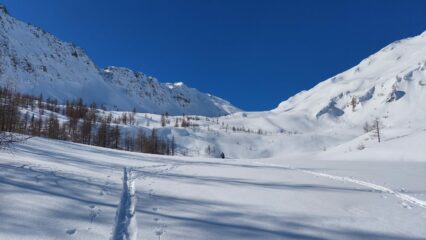 Oggi vento patagonico dappertutto tranne che nel vallone del Col Serena, che dopo la recente nevicata abbiamo trovato intonso. Alla partenza neve compatta con sopra un po’ di farina, poi farina su fondo portante facile da tracciare. Coste di Serena con valanghe recenti e distacchi gia coperti dall’ultima nevicata, nessun rumore sospetto o accumuli preoccupanti sull’itinerario. Avendo battuto traccia assieme ad un simpatico americano in discesa per primi ci siamo goduti alla grande la neve farinosa, 5 stelle fino all’Arpage du Bois. Parte bassa tra 3 e 4 stelle. Stamattina 15-20 persone, il gruppo più numeroso è sceso molto compatto senza rovinare più del necessario ma certo domani le 5 stelle non so se ci sono ancora…